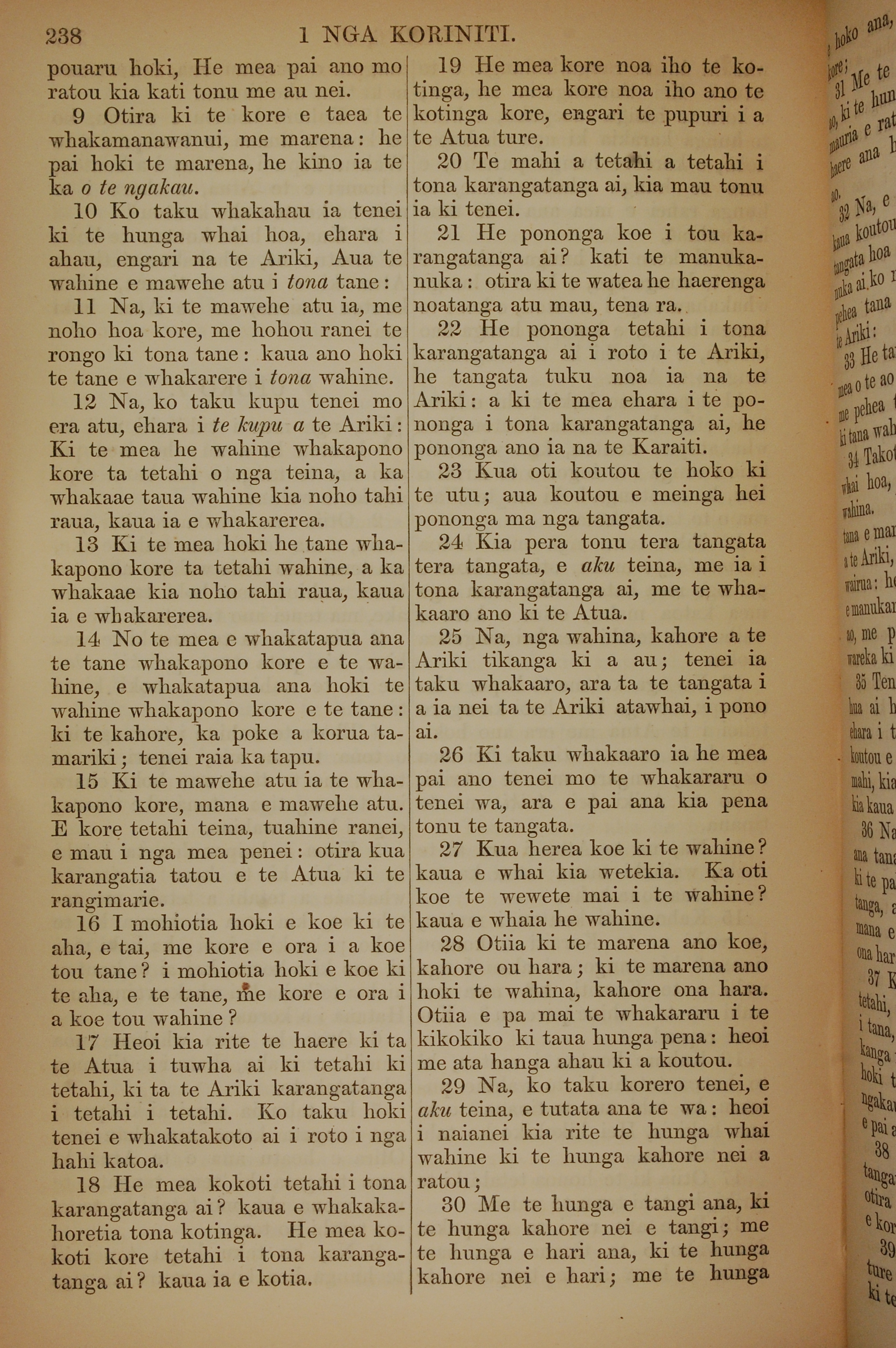 1852年KO TE KAWENATA HOU O TO TATOU ARIKI O TE KAI WHAKAORA O IHU KARAITI 哥林多前書 7 章 9 節到 7 章 30 節