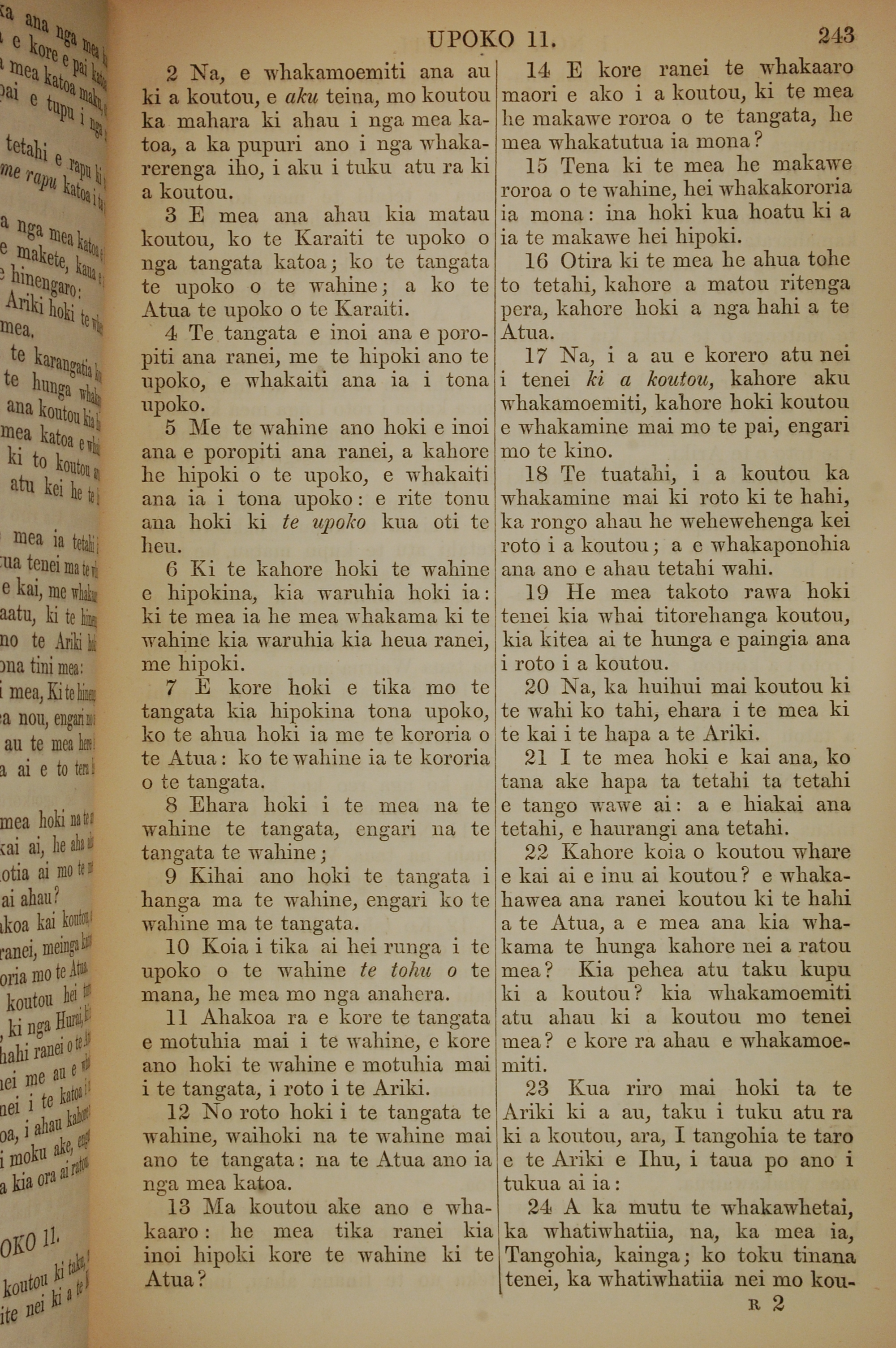 1852年KO TE KAWENATA HOU O TO TATOU ARIKI O TE KAI WHAKAORA O IHU KARAITI 哥林多前書 11 章 2 節到 11 章 24 節