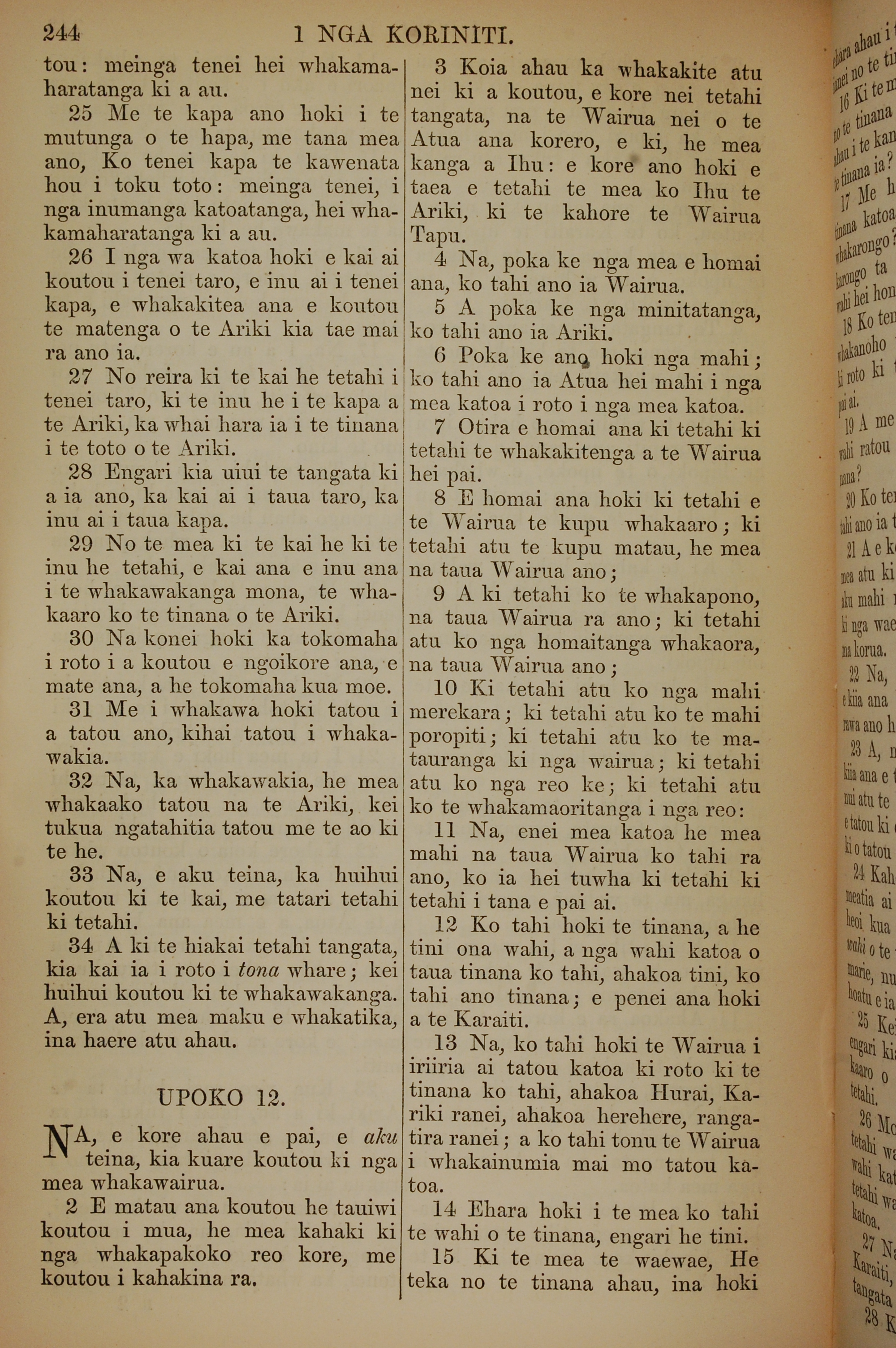1852年KO TE KAWENATA HOU O TO TATOU ARIKI O TE KAI WHAKAORA O IHU KARAITI 哥林多前書 11 章 25 節到 12 章 15 節