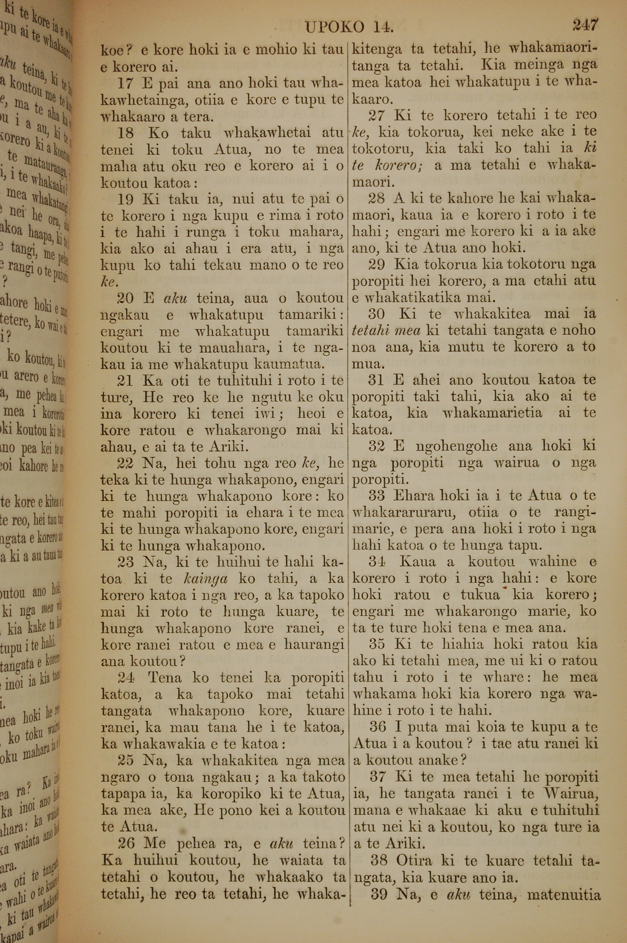1852年KO TE KAWENATA HOU O TO TATOU ARIKI O TE KAI WHAKAORA O IHU KARAITI 哥林多前書 14 章 17 節到 14 章 39 節
