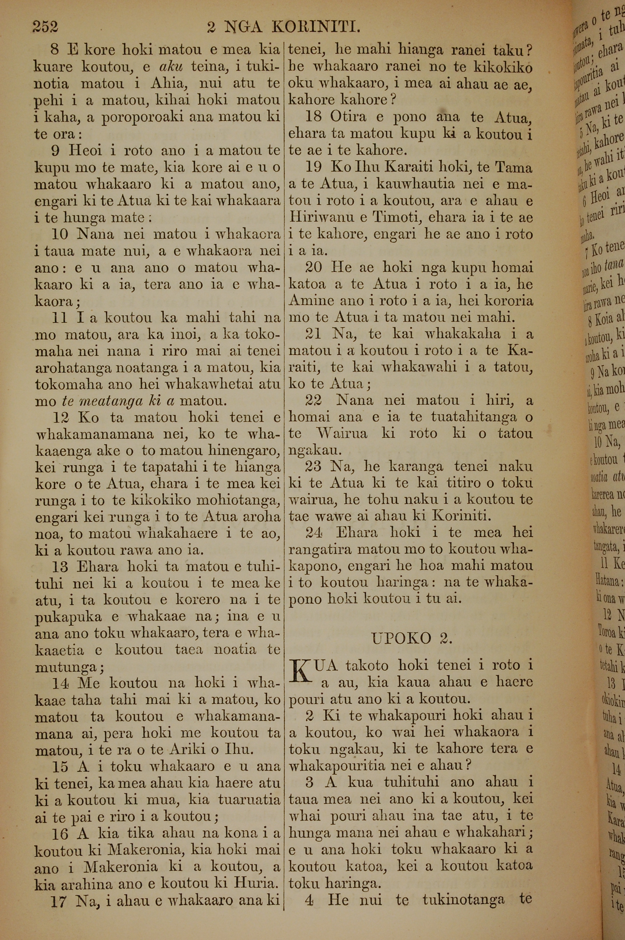 1852年KO TE KAWENATA HOU O TO TATOU ARIKI O TE KAI WHAKAORA O IHU KARAITI 哥林多後書 1 章 8 節到 2 章 4 節