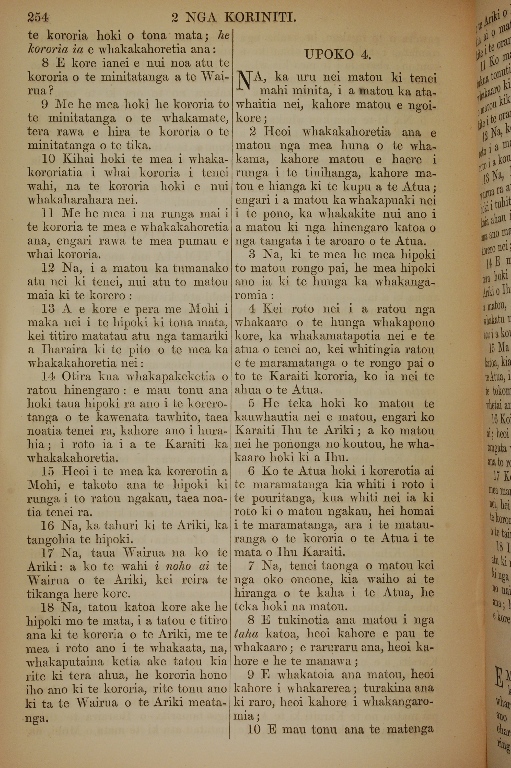 1852年KO TE KAWENATA HOU O TO TATOU ARIKI O TE KAI WHAKAORA O IHU KARAITI 哥林多後書 3 章 8 節到 4 章 10 節