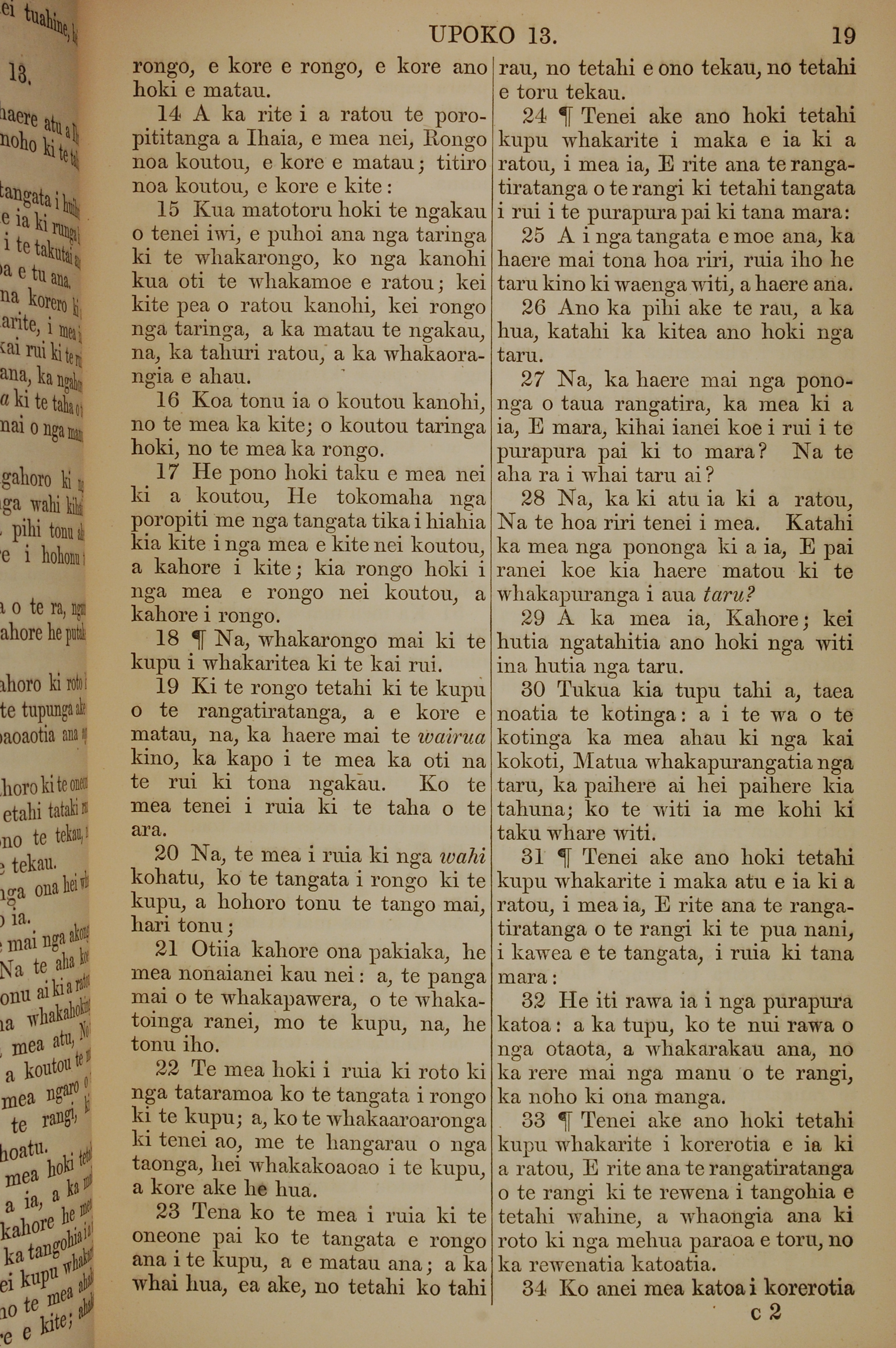 1852年KO TE KAWENATA HOU O TO TATOU ARIKI O TE KAI WHAKAORA O IHU KARAITI 馬太福音 13 章 14 節到 13 章 34 節