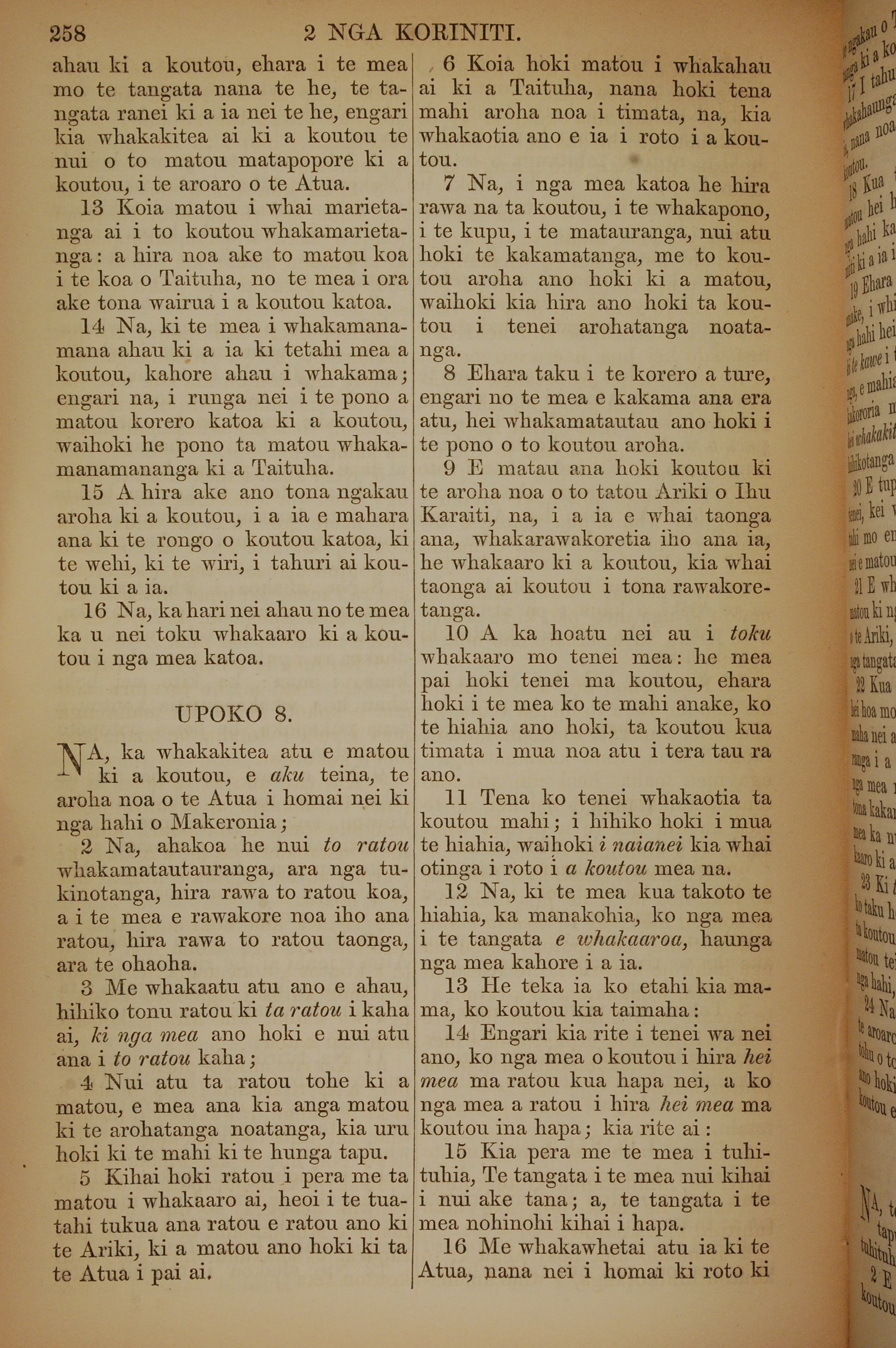 1852年KO TE KAWENATA HOU O TO TATOU ARIKI O TE KAI WHAKAORA O IHU KARAITI 哥林多後書 7 章 13 節到 8 章 16 節