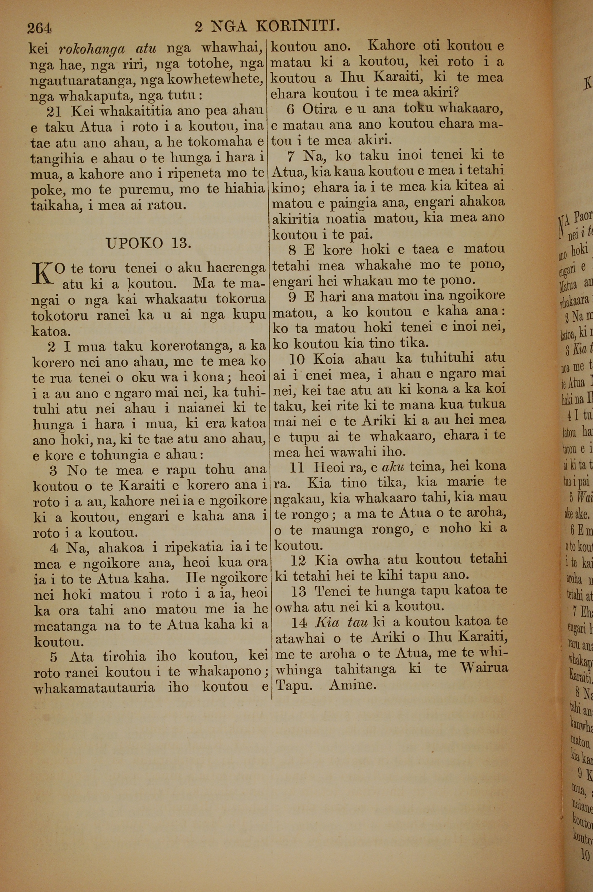 1852年KO TE KAWENATA HOU O TO TATOU ARIKI O TE KAI WHAKAORA O IHU KARAITI 哥林多後書 12 章 21 節到 13 章 14 節