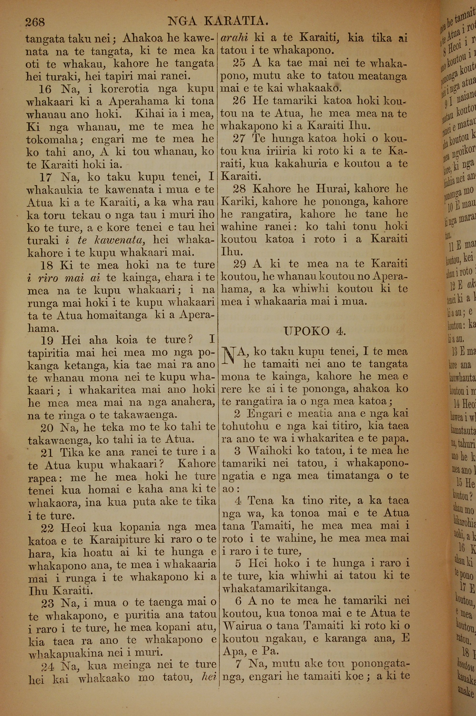 1852年KO TE KAWENATA HOU O TO TATOU ARIKI O TE KAI WHAKAORA O IHU KARAITI 加拉太書 3 章 16 節到 4 章 7 節