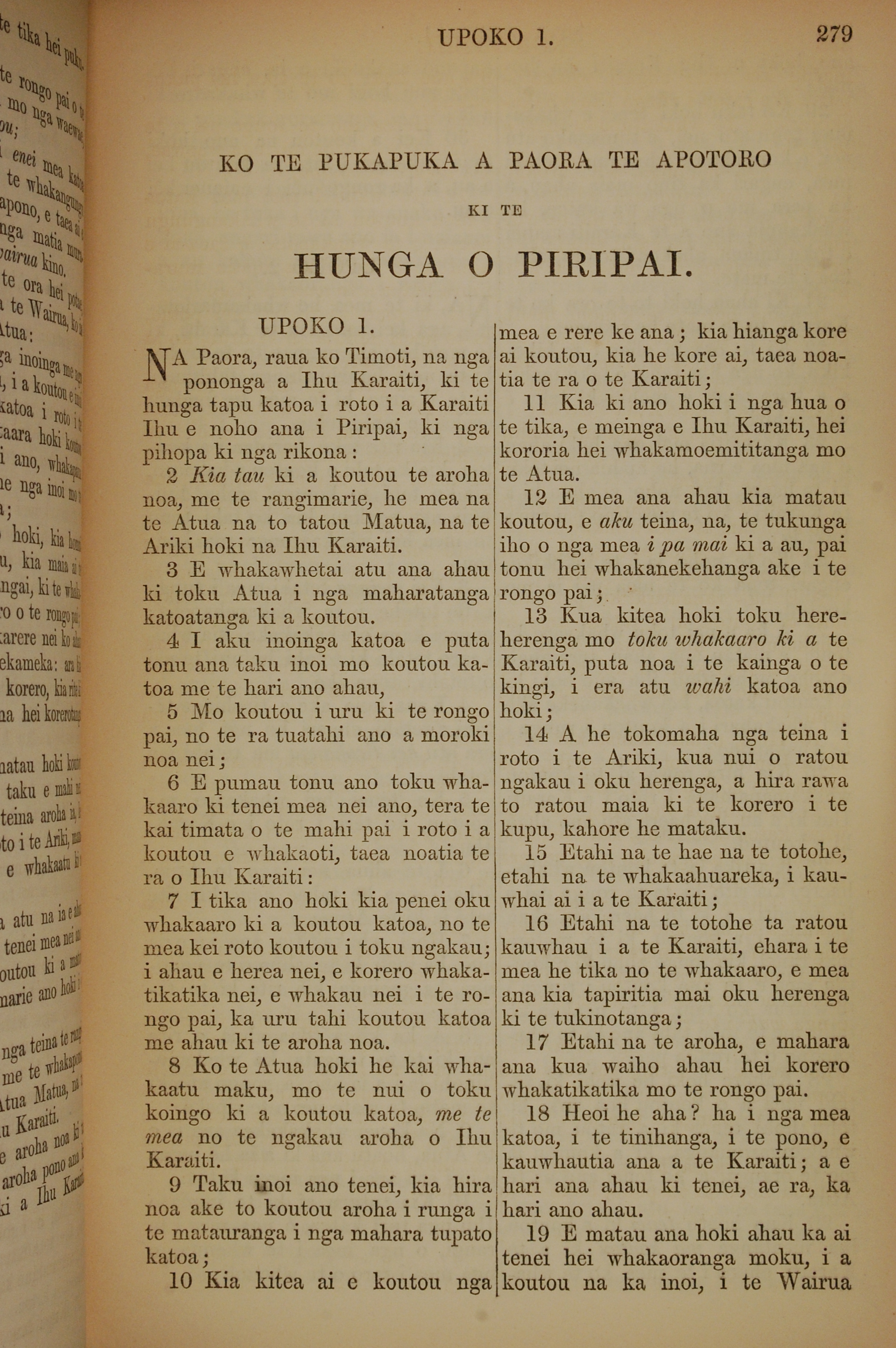 1852年KO TE KAWENATA HOU O TO TATOU ARIKI O TE KAI WHAKAORA O IHU KARAITI 腓立比書 1 章 1 節到 1 章 19 節