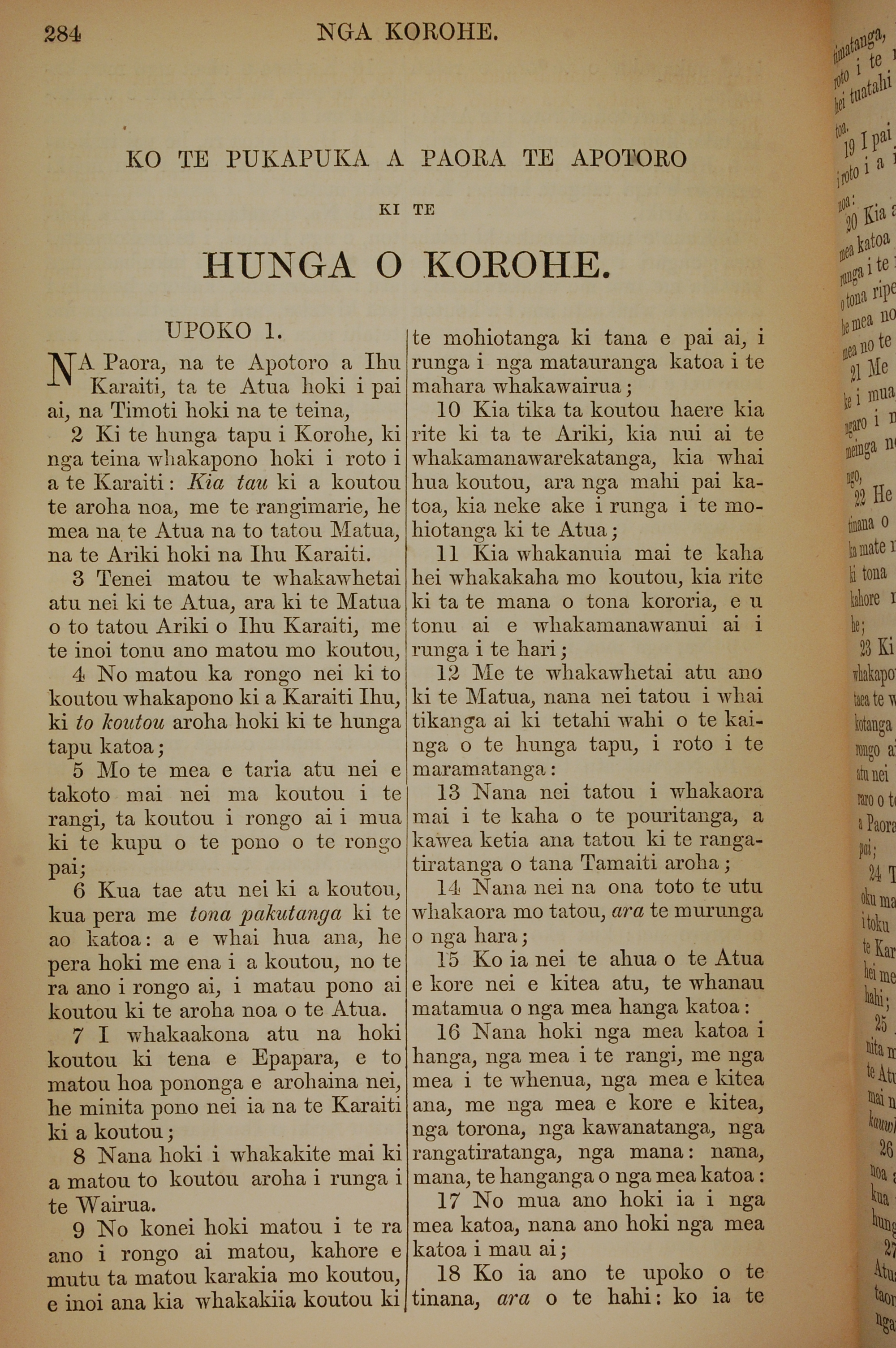 1852年KO TE KAWENATA HOU O TO TATOU ARIKI O TE KAI WHAKAORA O IHU KARAITI 歌羅西書 1 章 1 節到 1 章 18 節