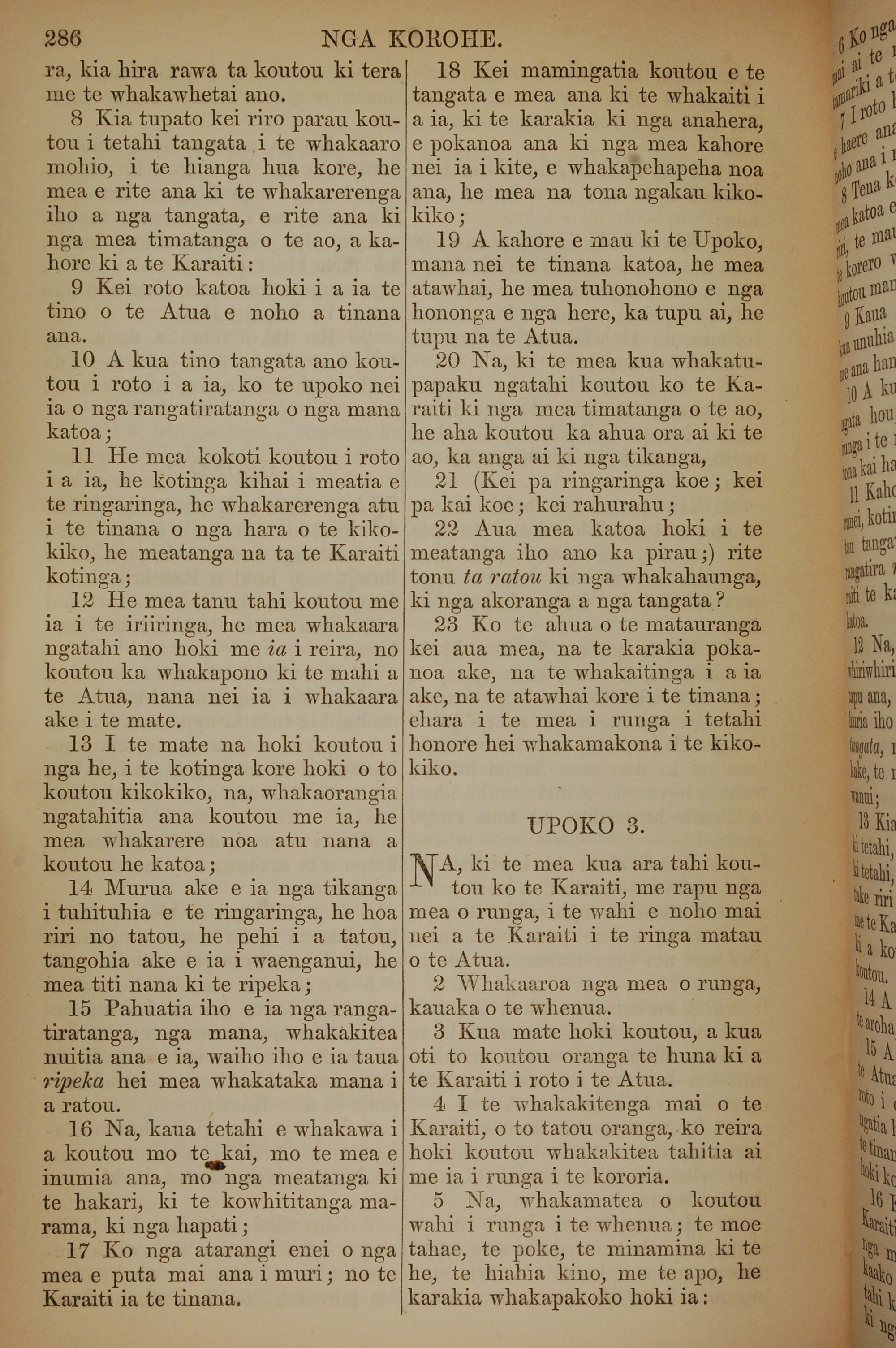 1852年KO TE KAWENATA HOU O TO TATOU ARIKI O TE KAI WHAKAORA O IHU KARAITI 歌羅西書 2 章 8 節到 3 章 5 節