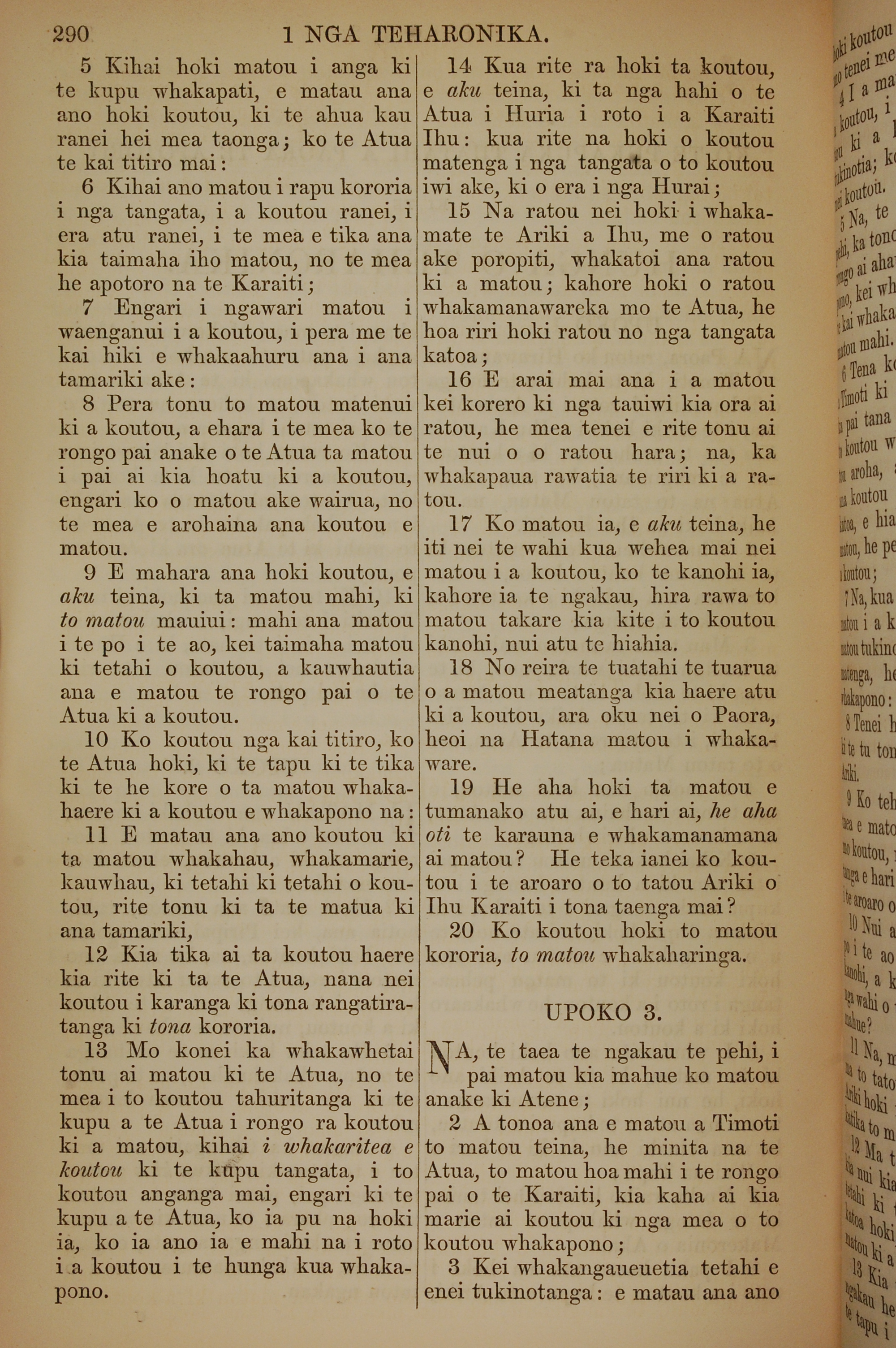 1852年KO TE KAWENATA HOU O TO TATOU ARIKI O TE KAI WHAKAORA O IHU KARAITI 帖撒羅尼迦前書 2 章 5 節到 3 章 3 節