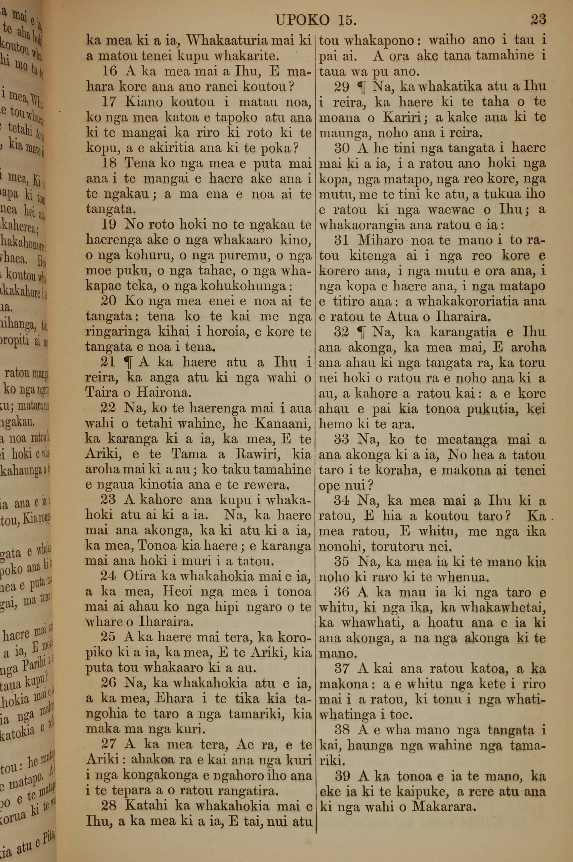 1852年KO TE KAWENATA HOU O TO TATOU ARIKI O TE KAI WHAKAORA O IHU KARAITI 馬太福音 15 章 16 節到 15 章 39 節