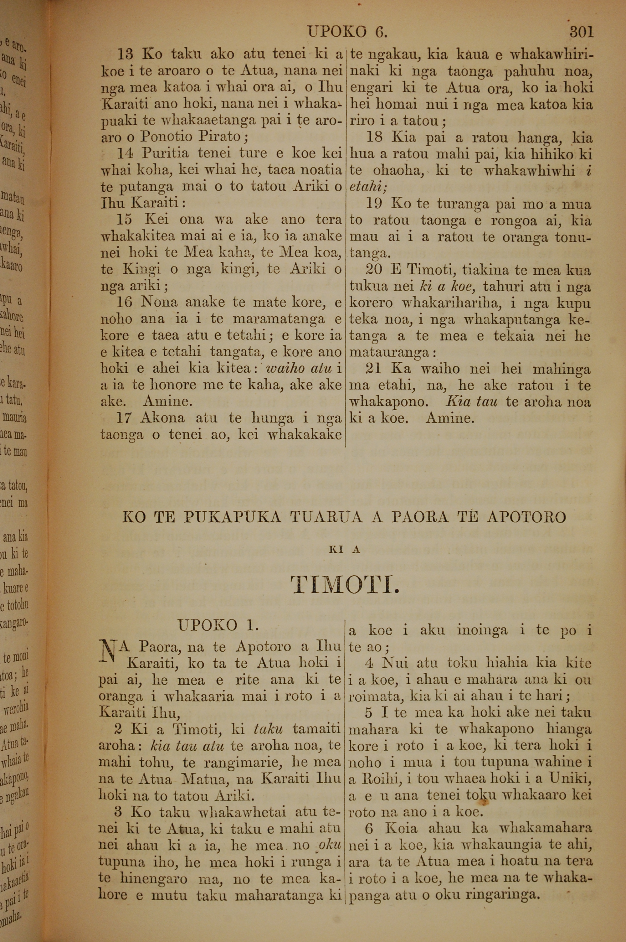 1852年KO TE KAWENATA HOU O TO TATOU ARIKI O TE KAI WHAKAORA O IHU KARAITI 提摩太後書 1 章 1 節到 1 章 6 節