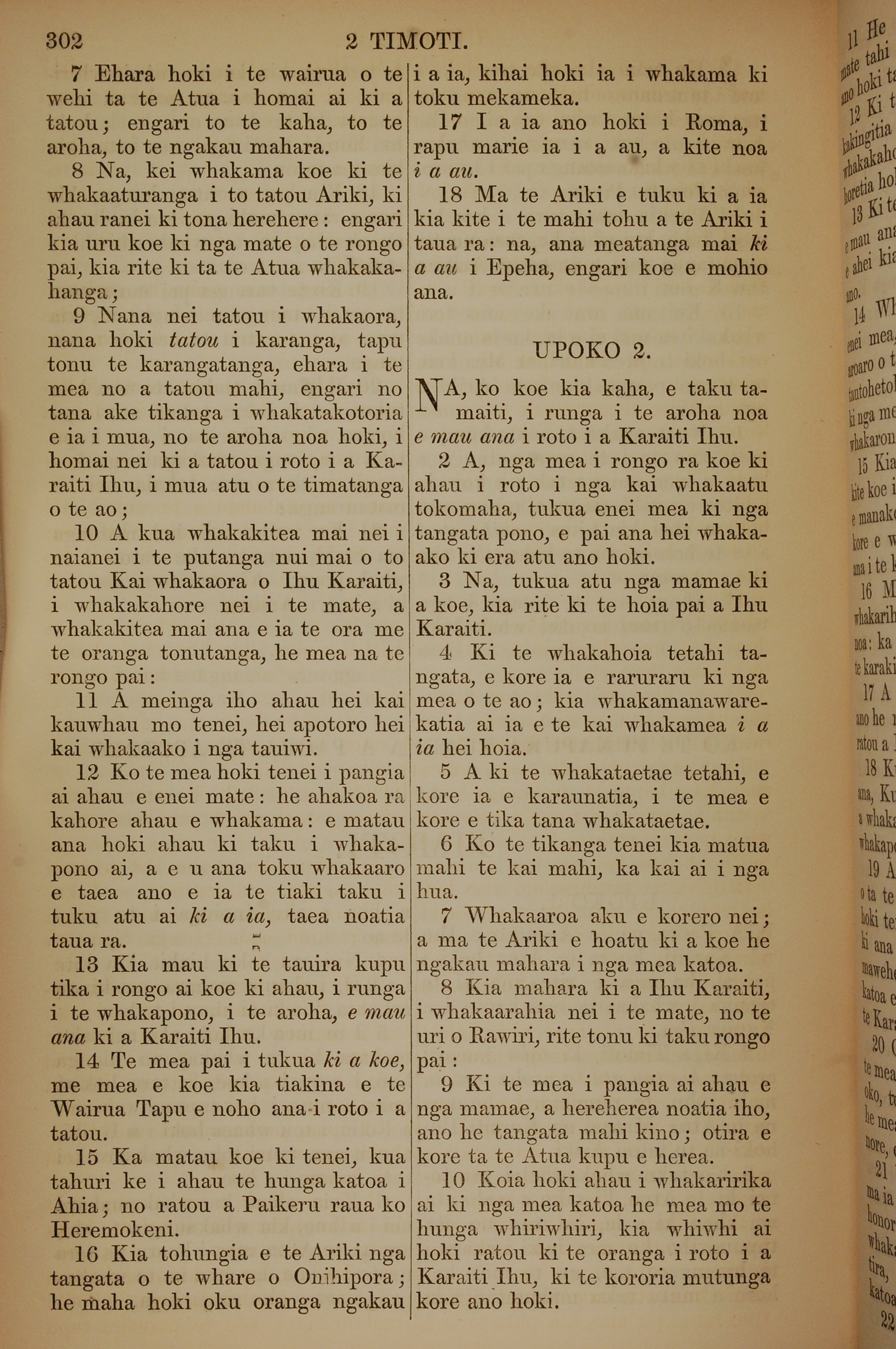 1852年KO TE KAWENATA HOU O TO TATOU ARIKI O TE KAI WHAKAORA O IHU KARAITI 提摩太後書 1 章 7 節到 2 章 10 節