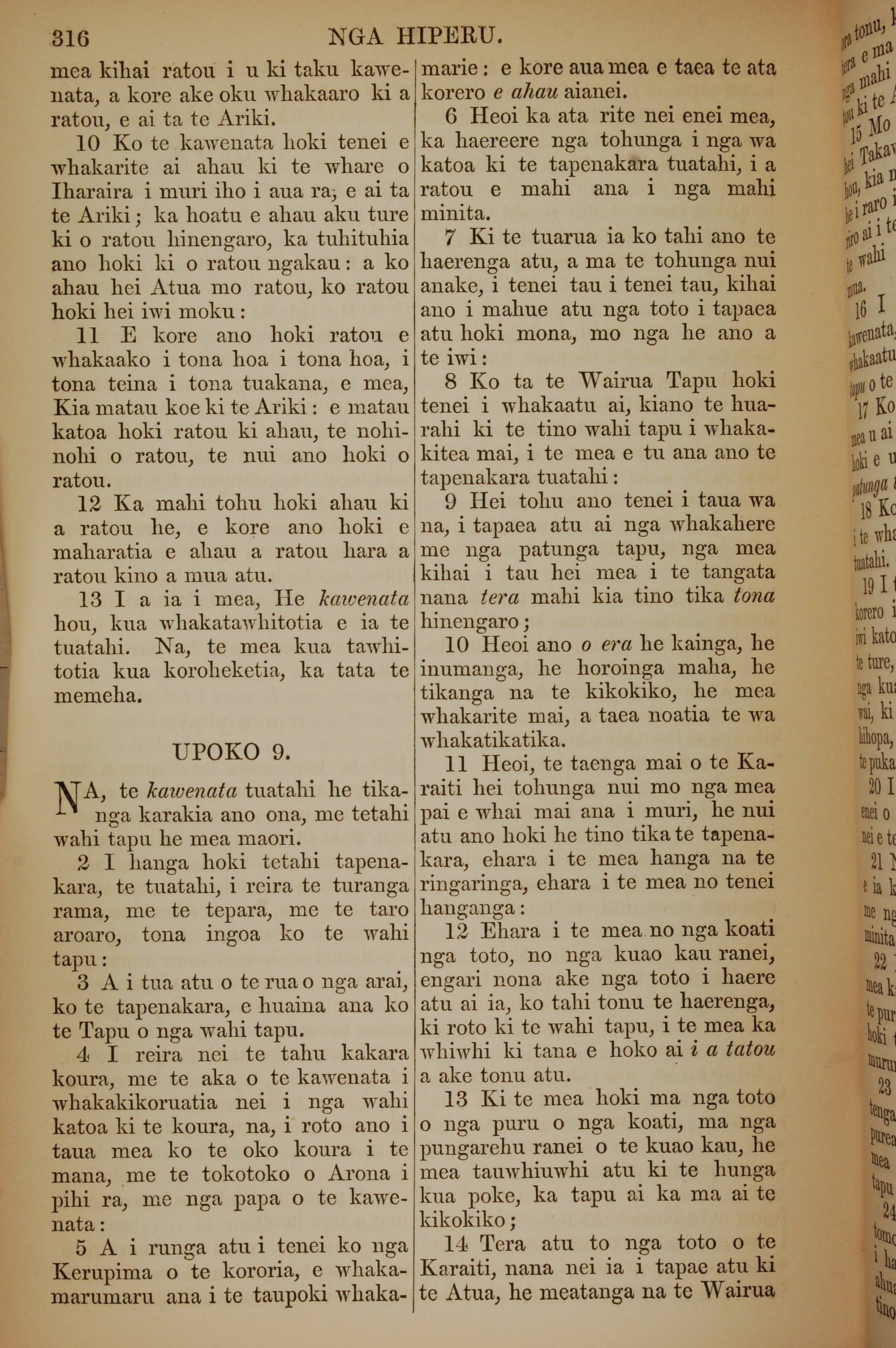 1852年KO TE KAWENATA HOU O TO TATOU ARIKI O TE KAI WHAKAORA O IHU KARAITI 希伯來書 8 章 10 節到 9 章 14 節