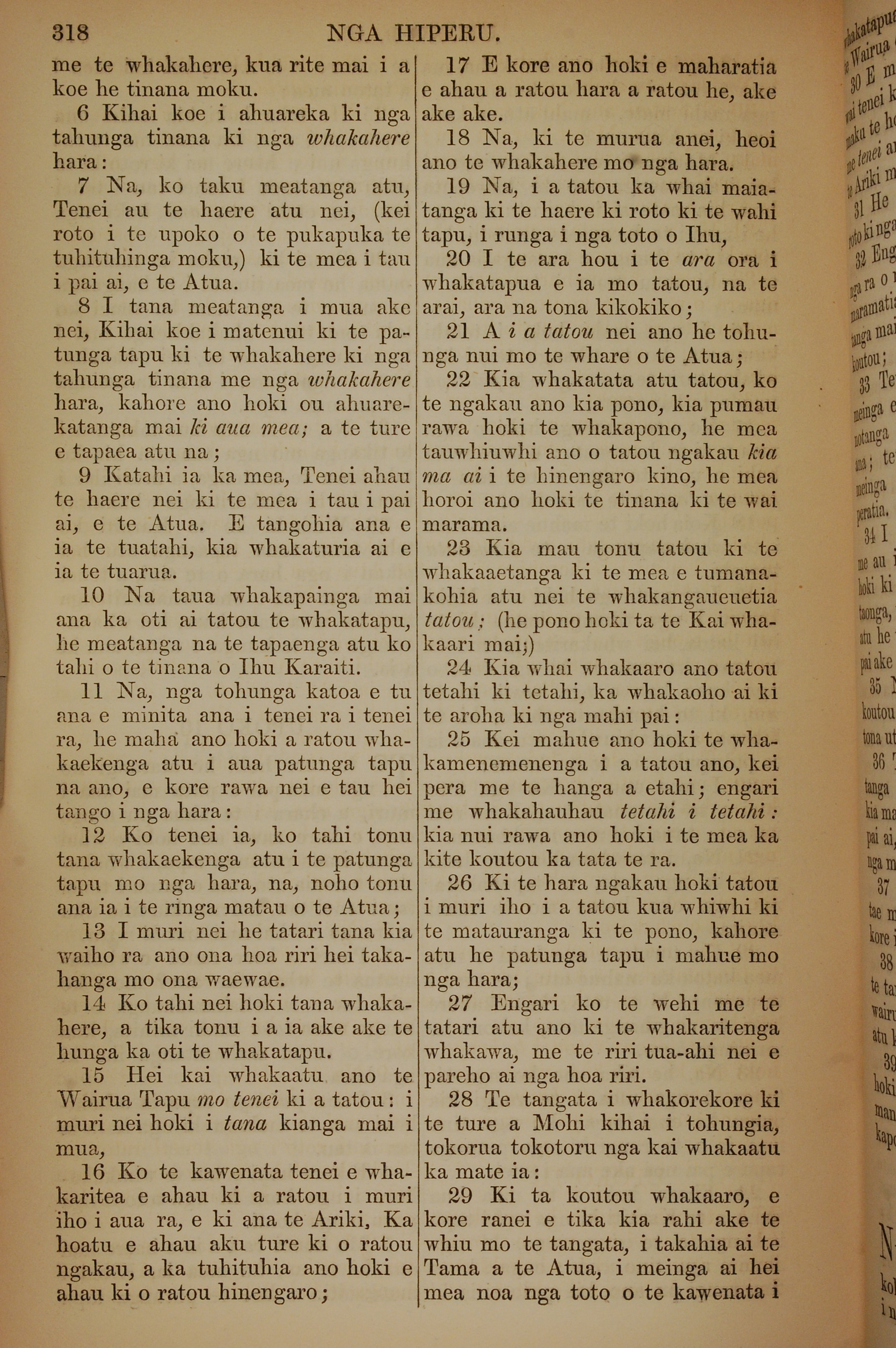 1852年KO TE KAWENATA HOU O TO TATOU ARIKI O TE KAI WHAKAORA O IHU KARAITI 希伯來書 10 章 6 節到 10 章 29 節