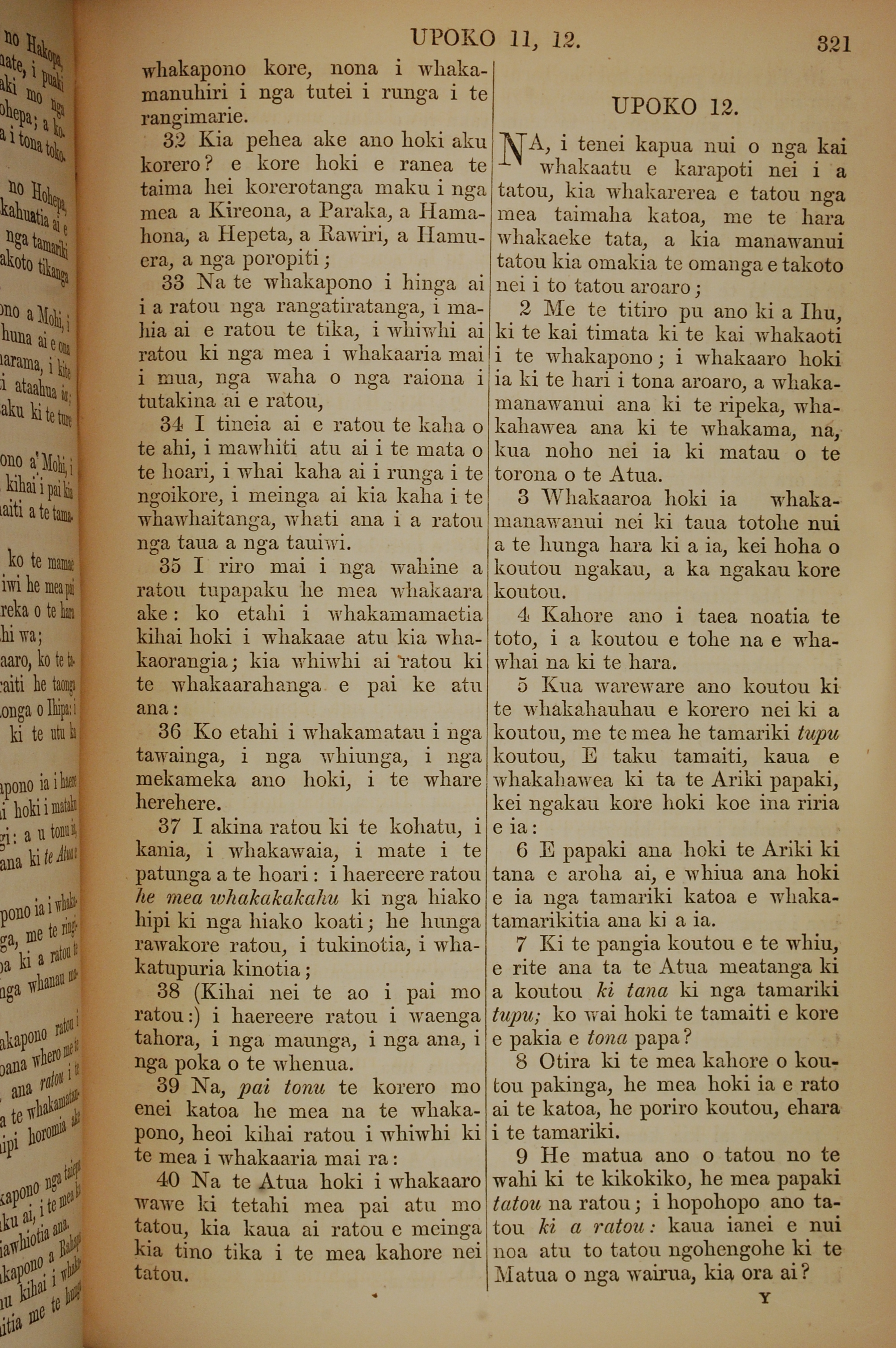 1852年KO TE KAWENATA HOU O TO TATOU ARIKI O TE KAI WHAKAORA O IHU KARAITI 希伯來書 11 章 32 節到 12 章 9 節