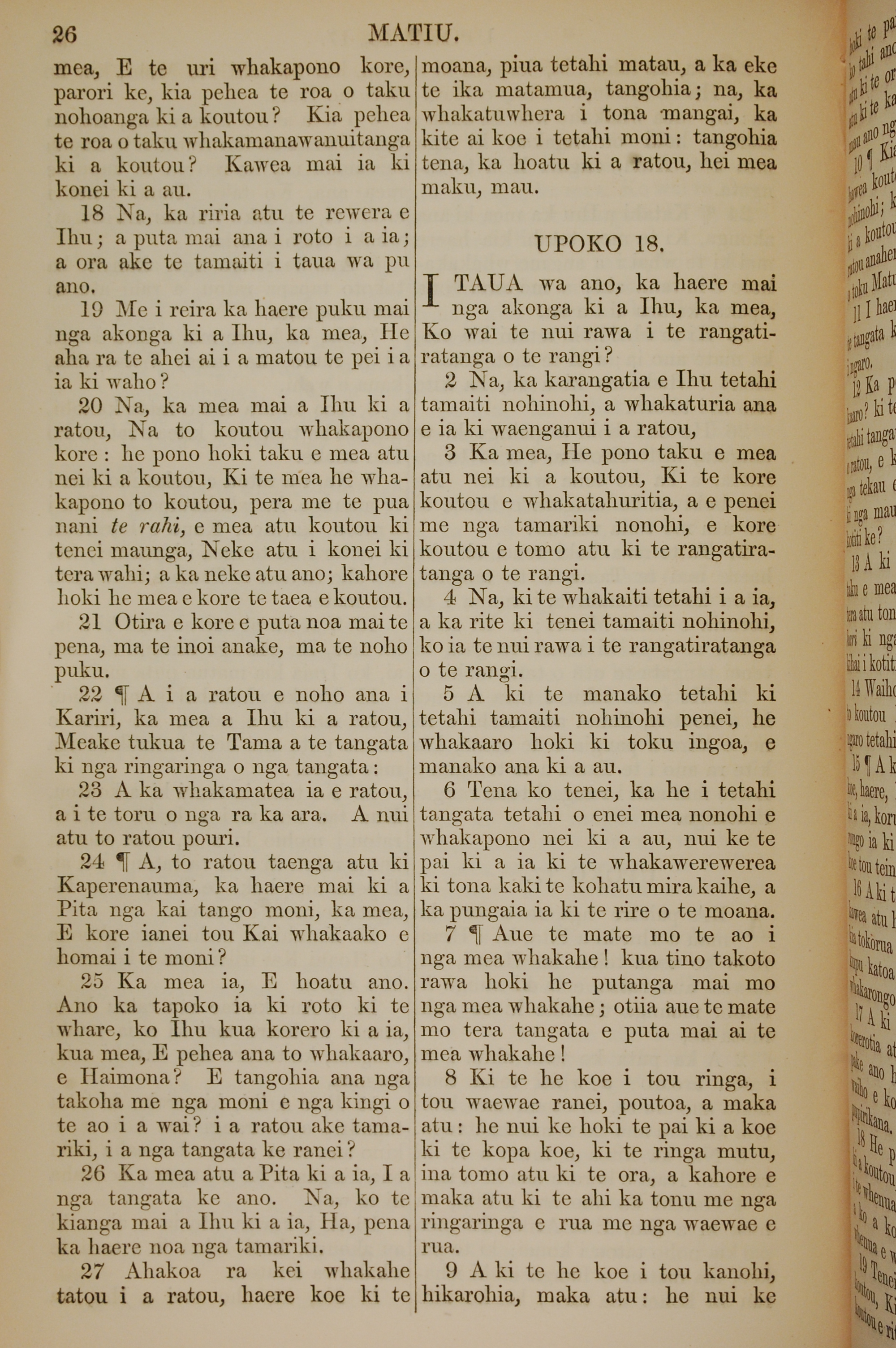 1852年KO TE KAWENATA HOU O TO TATOU ARIKI O TE KAI WHAKAORA O IHU KARAITI 馬太福音 17 章 18 節到 18 章 9 節