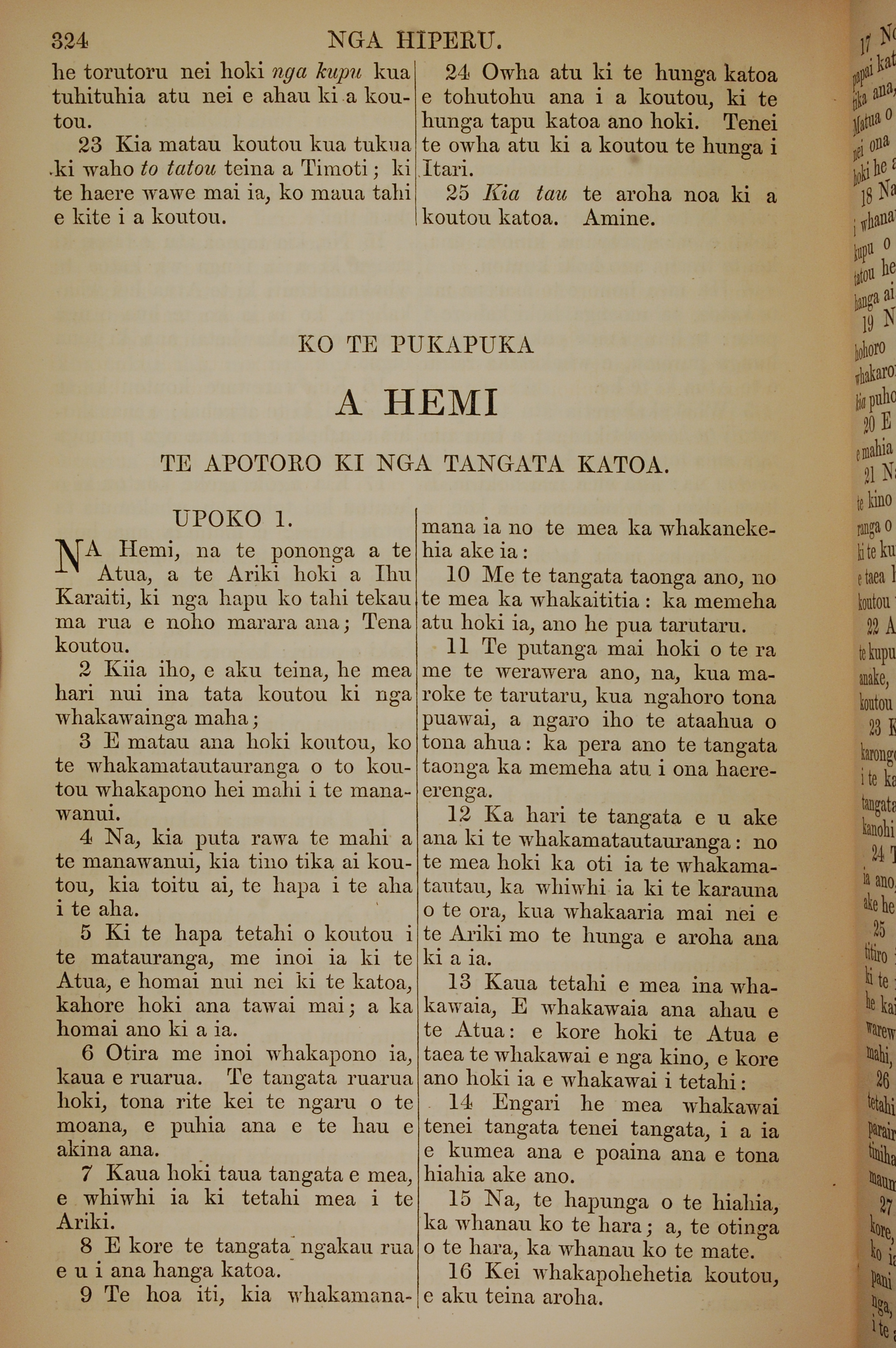 1852年KO TE KAWENATA HOU O TO TATOU ARIKI O TE KAI WHAKAORA O IHU KARAITI 希伯來書 13 章 23 節到 13 章 25 節