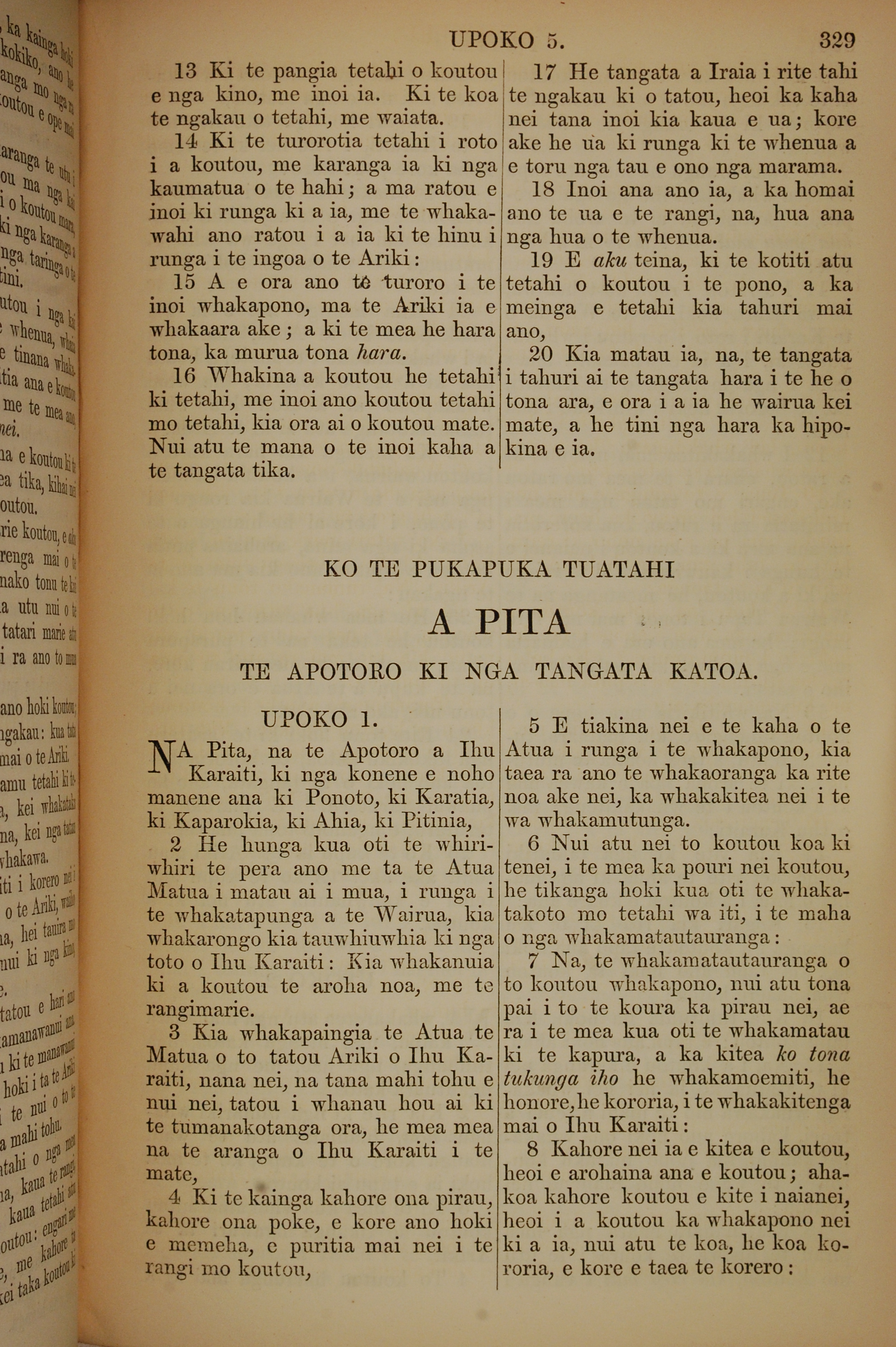 1852年KO TE KAWENATA HOU O TO TATOU ARIKI O TE KAI WHAKAORA O IHU KARAITI 雅各書 5 章 13 節到 5 章 20 節