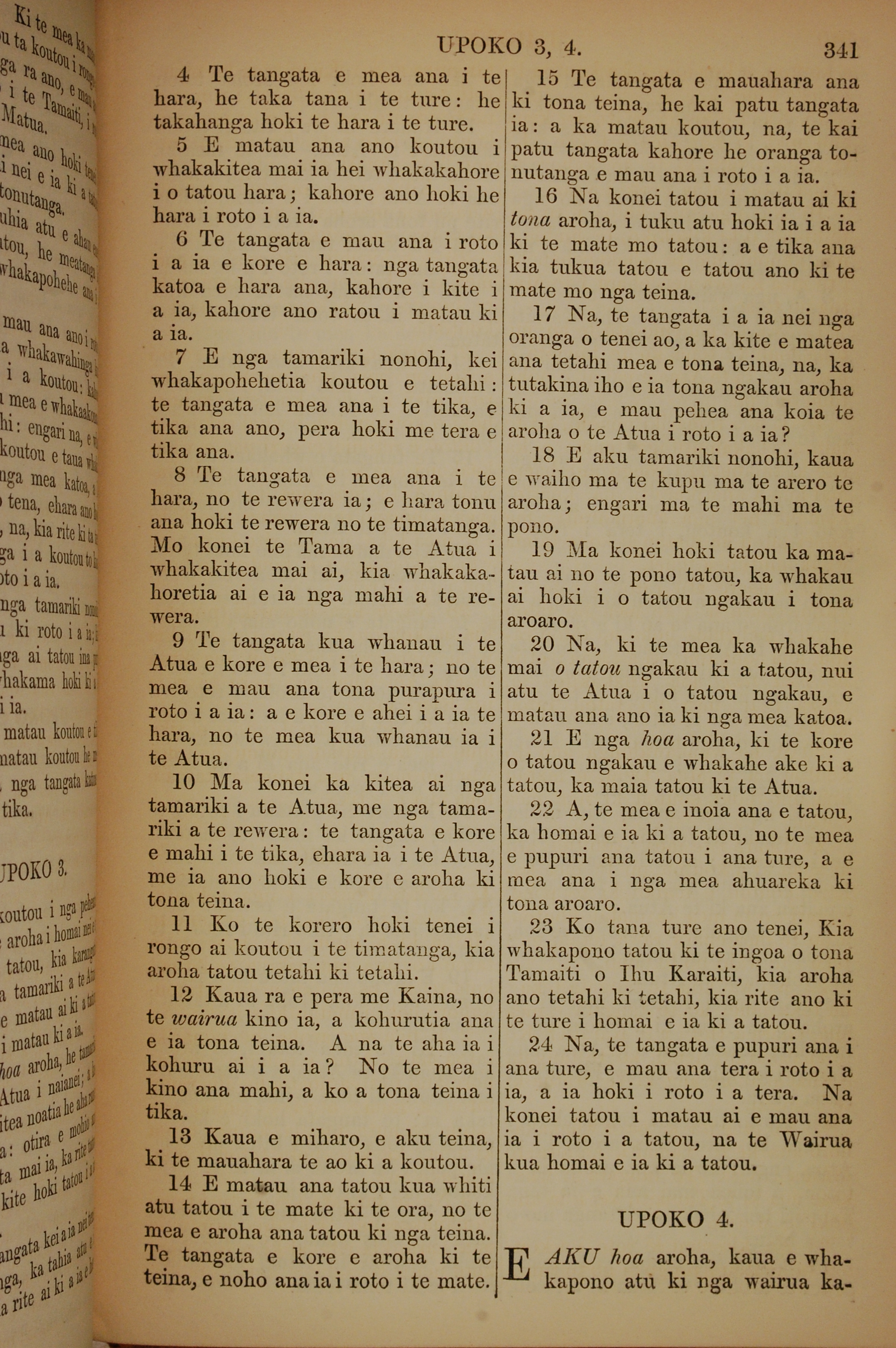 1852年KO TE KAWENATA HOU O TO TATOU ARIKI O TE KAI WHAKAORA O IHU KARAITI 約翰一書 3 章 4 節到 4 章 1 節