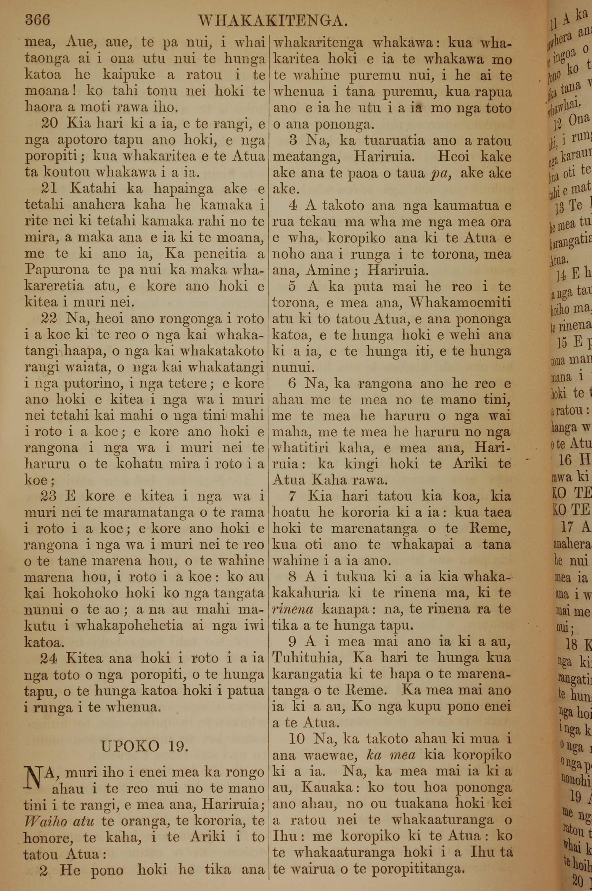 1852年KO TE KAWENATA HOU O TO TATOU ARIKI O TE KAI WHAKAORA O IHU KARAITI 啟示錄 18 章 20 節到 19 章 10 節