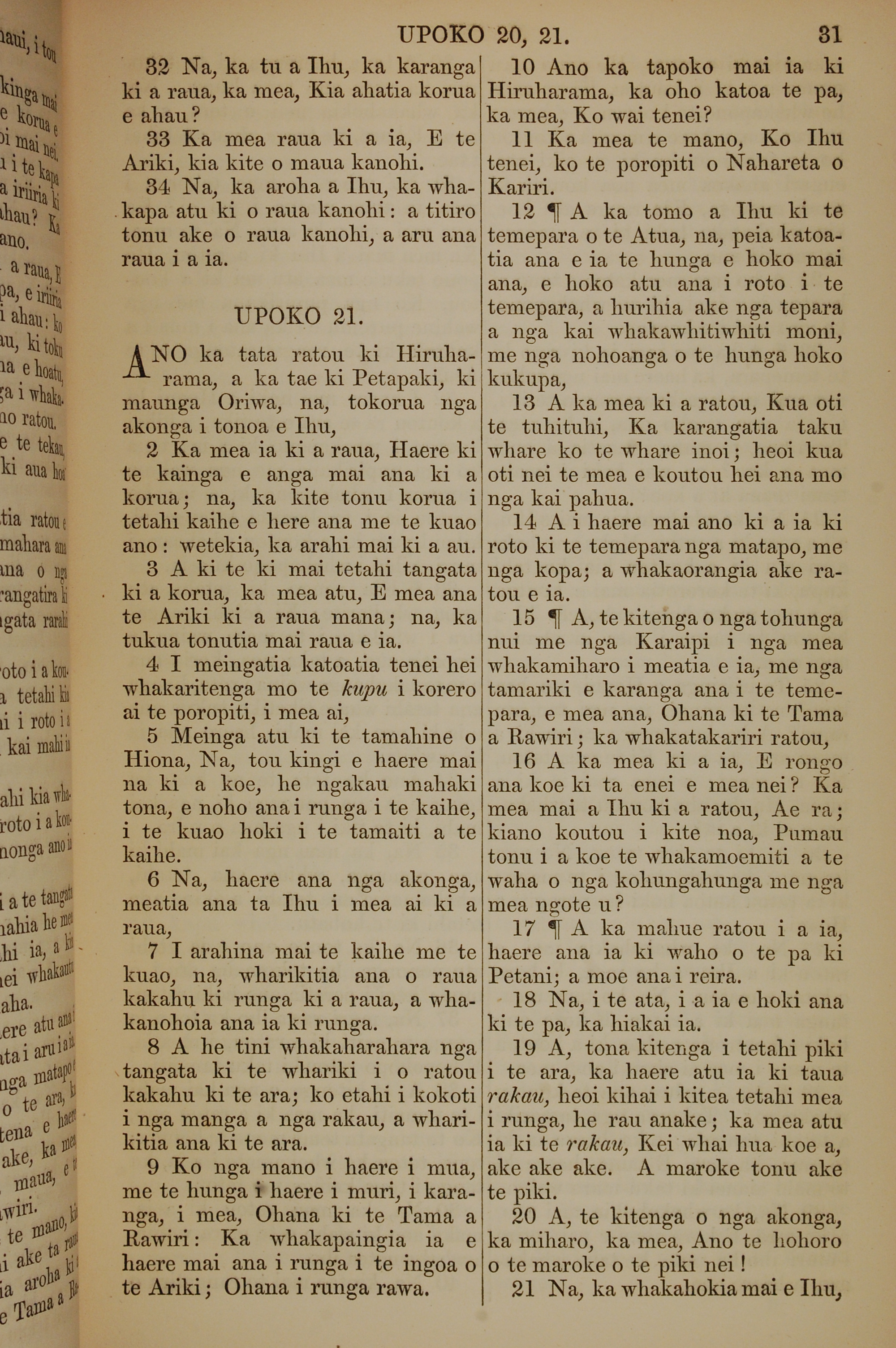1852年KO TE KAWENATA HOU O TO TATOU ARIKI O TE KAI WHAKAORA O IHU KARAITI 馬太福音 20 章 32 節到 21 章 21 節