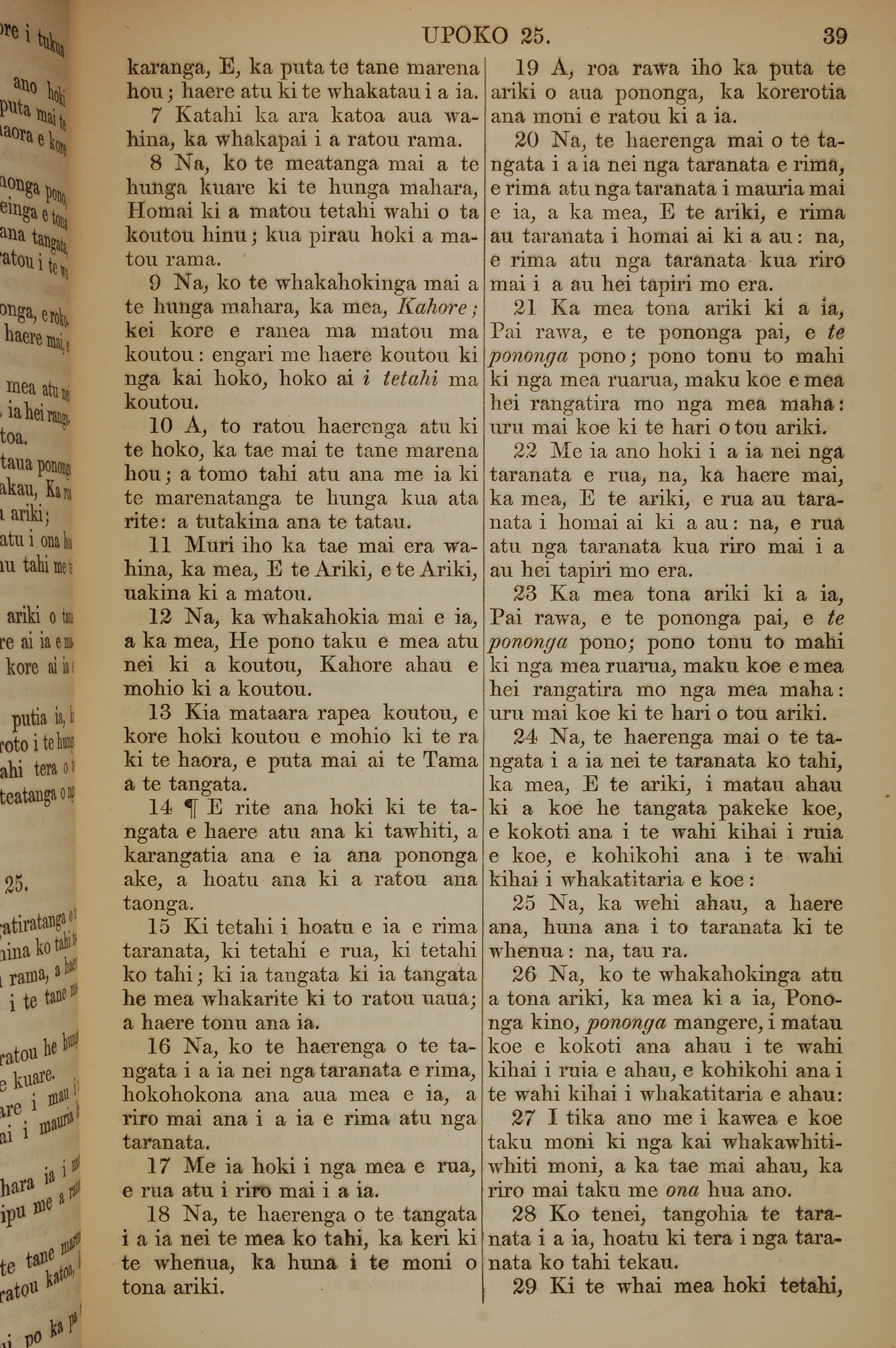 1852年KO TE KAWENATA HOU O TO TATOU ARIKI O TE KAI WHAKAORA O IHU KARAITI 馬太福音 25 章 7 節到 25 章 29 節