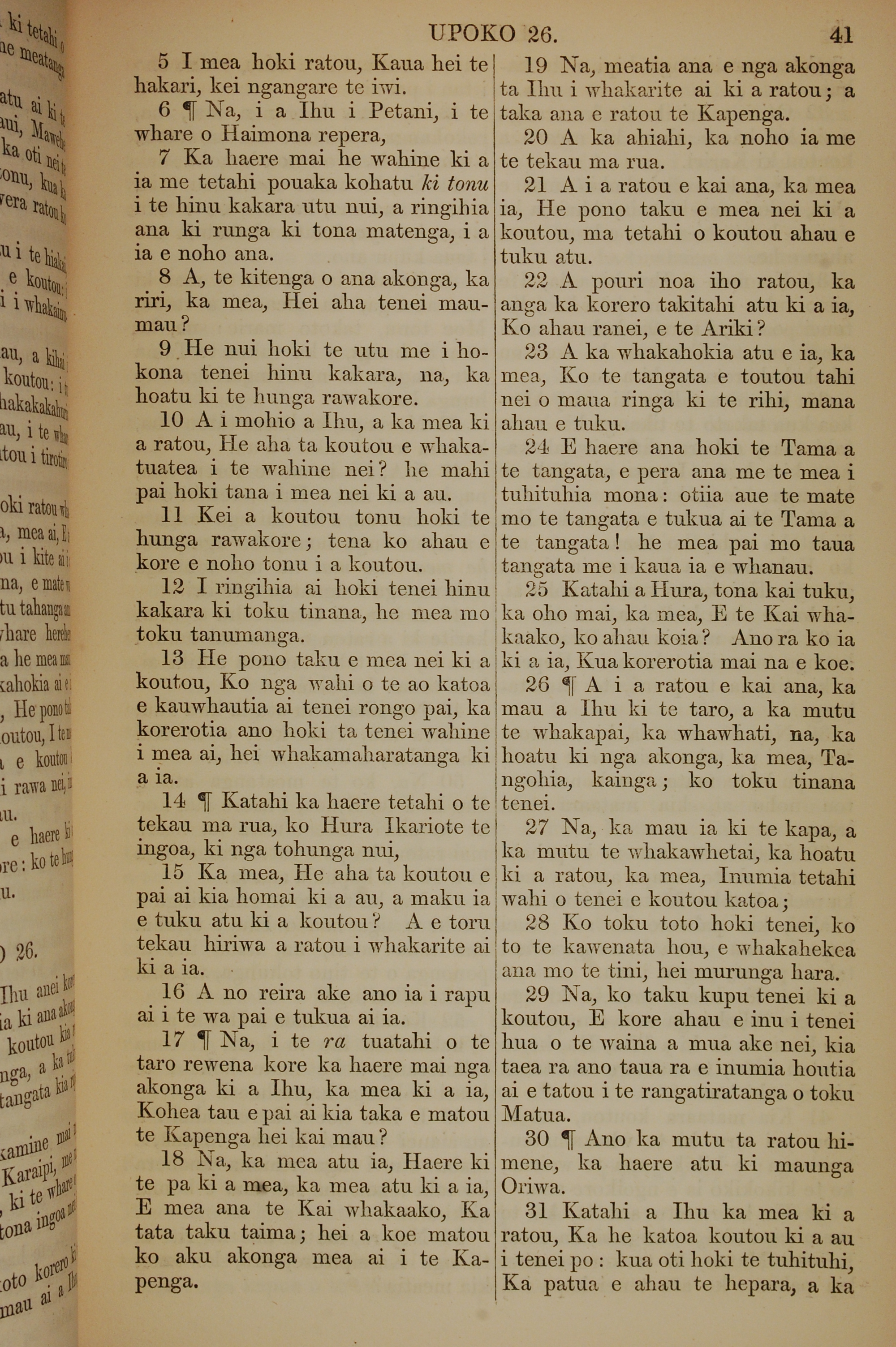 1852年KO TE KAWENATA HOU O TO TATOU ARIKI O TE KAI WHAKAORA O IHU KARAITI 馬太福音 26 章 5 節到 26 章 31 節