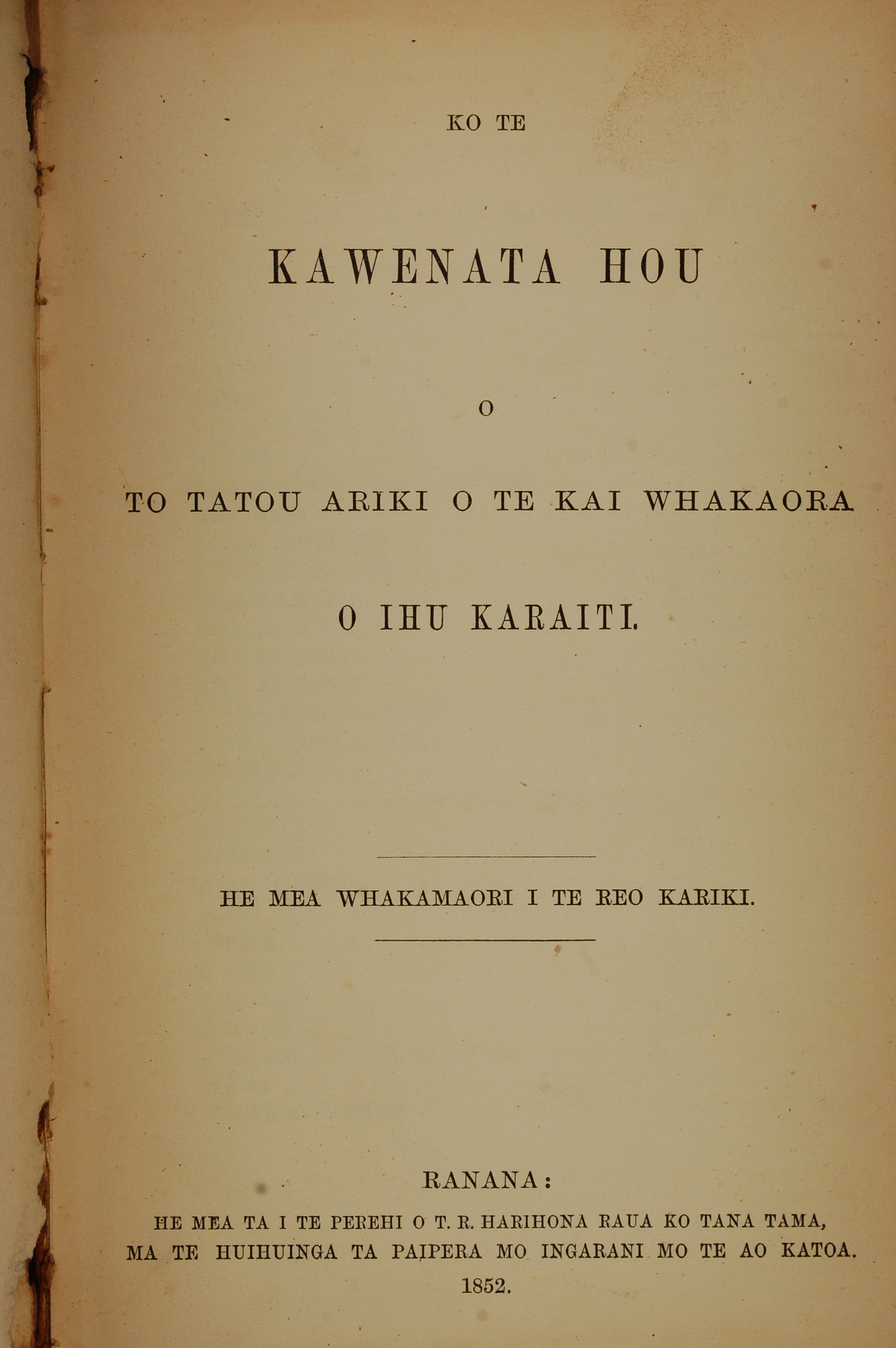 1852年KO TE KAWENATA HOU O TO TATOU ARIKI O TE KAI WHAKAORA O IHU KARAITI 馬太福音 0 章 4 節到 0 章 4 節