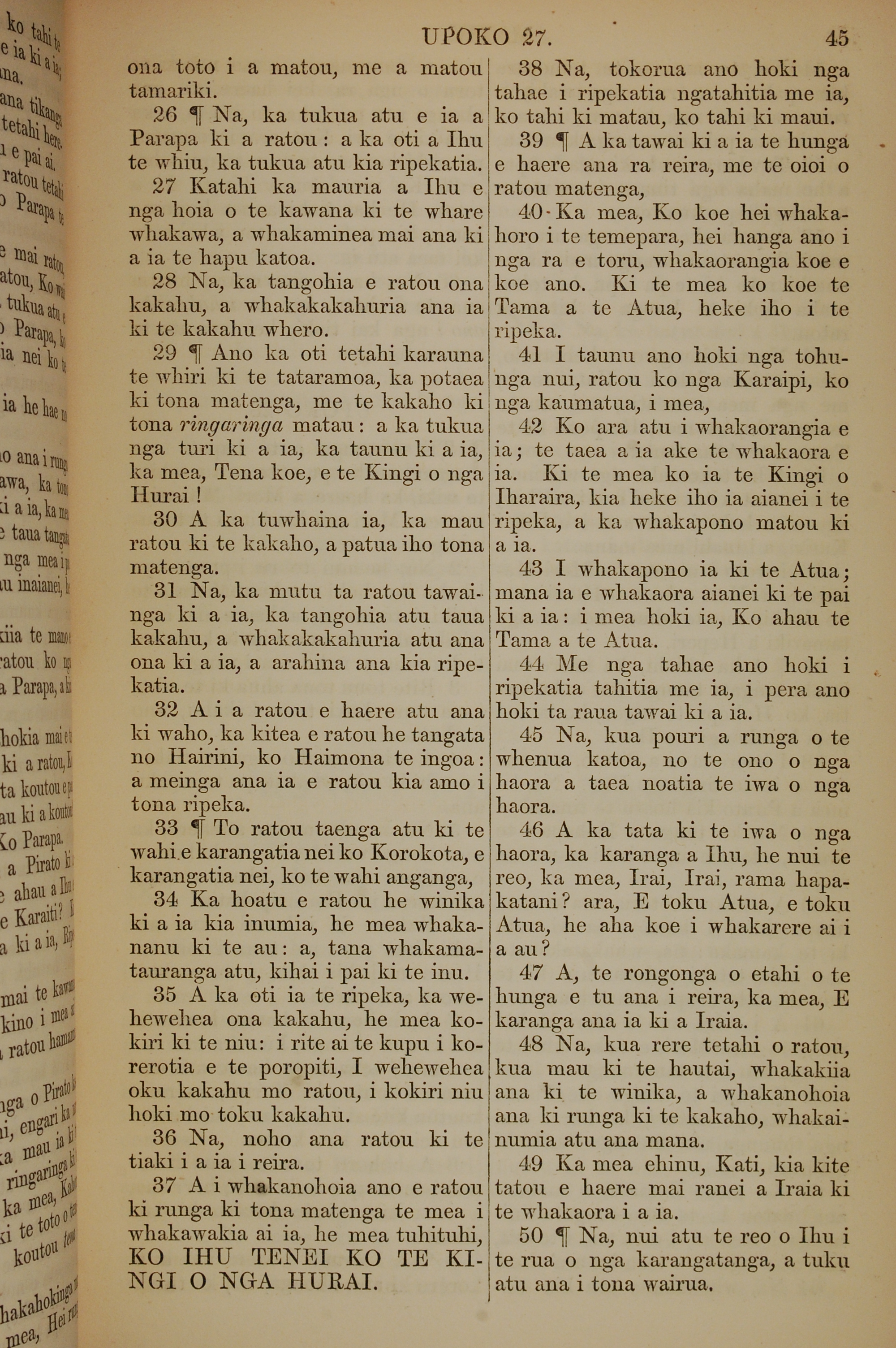 1852年KO TE KAWENATA HOU O TO TATOU ARIKI O TE KAI WHAKAORA O IHU KARAITI 馬太福音 27 章 26 節到 27 章 50 節