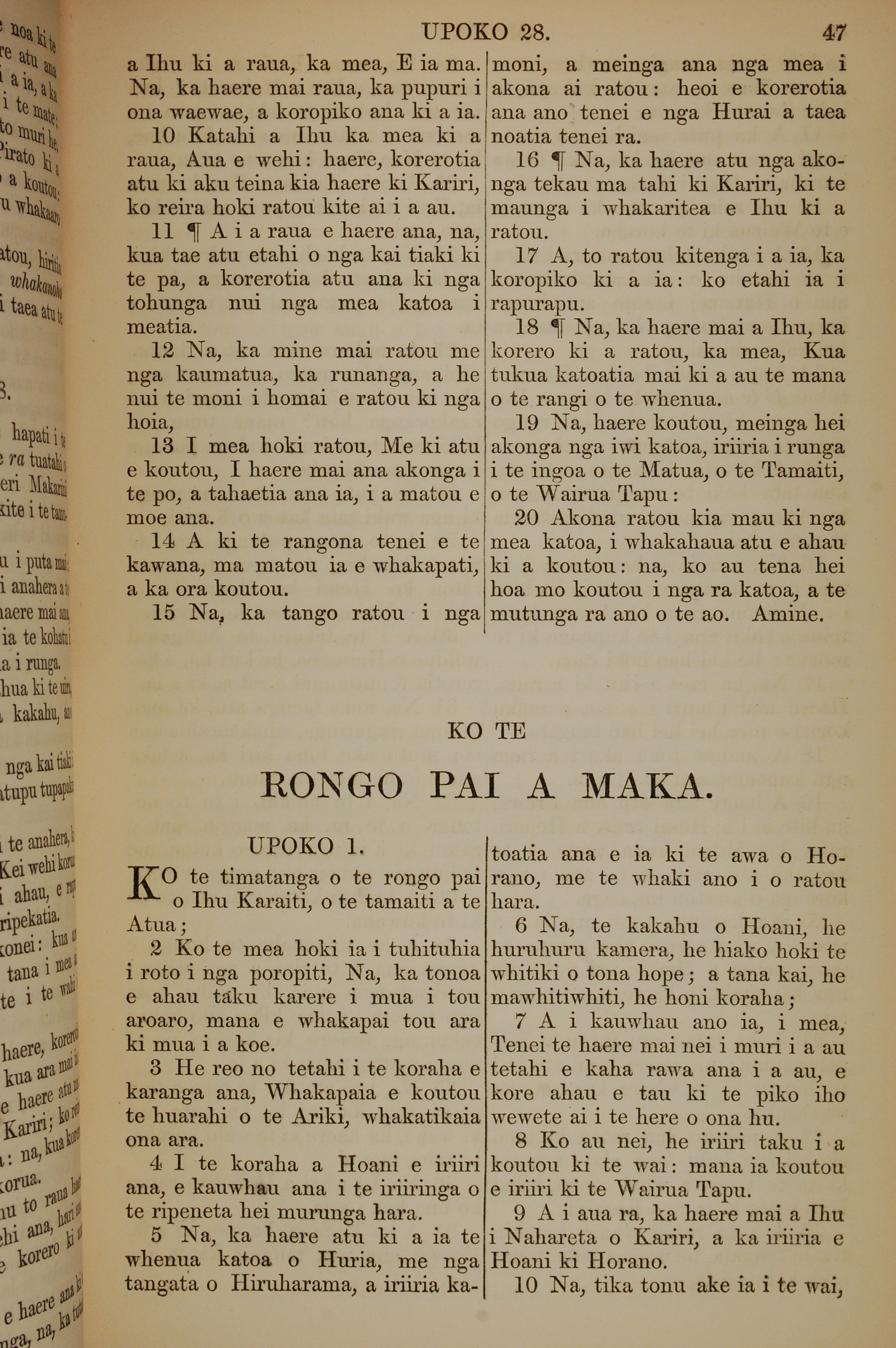1852年KO TE KAWENATA HOU O TO TATOU ARIKI O TE KAI WHAKAORA O IHU KARAITI 馬可福音 1 章 1 節到 1 章 10 節