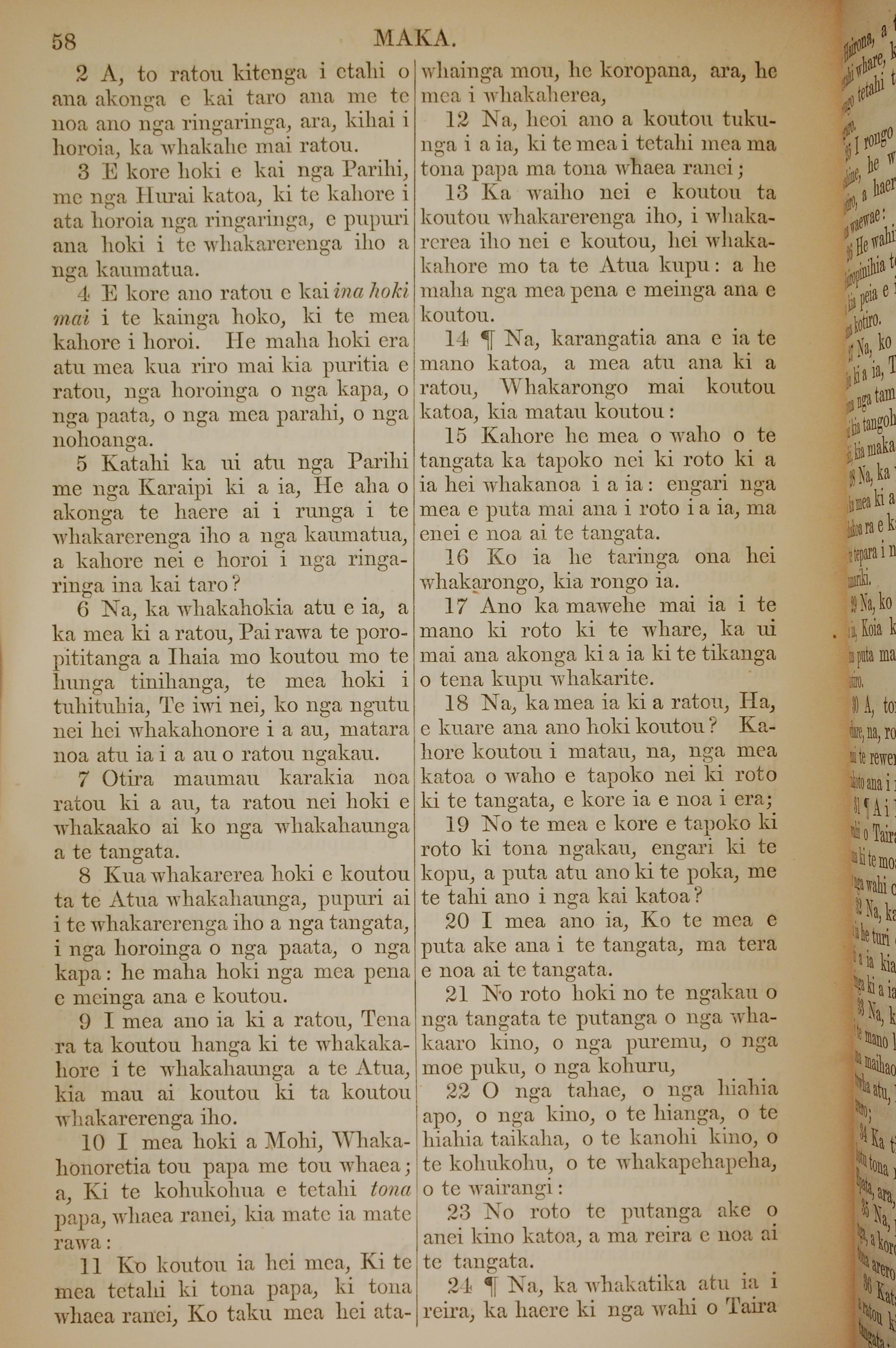 1852年KO TE KAWENATA HOU O TO TATOU ARIKI O TE KAI WHAKAORA O IHU KARAITI 馬可福音 7 章 2 節到 7 章 24 節