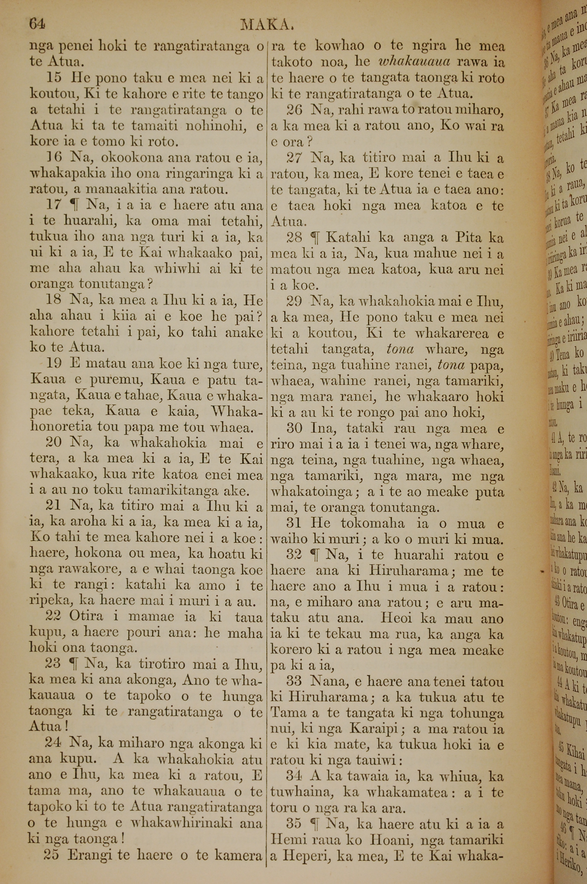 1852年KO TE KAWENATA HOU O TO TATOU ARIKI O TE KAI WHAKAORA O IHU KARAITI 馬可福音 10 章 15 節到 10 章 35 節