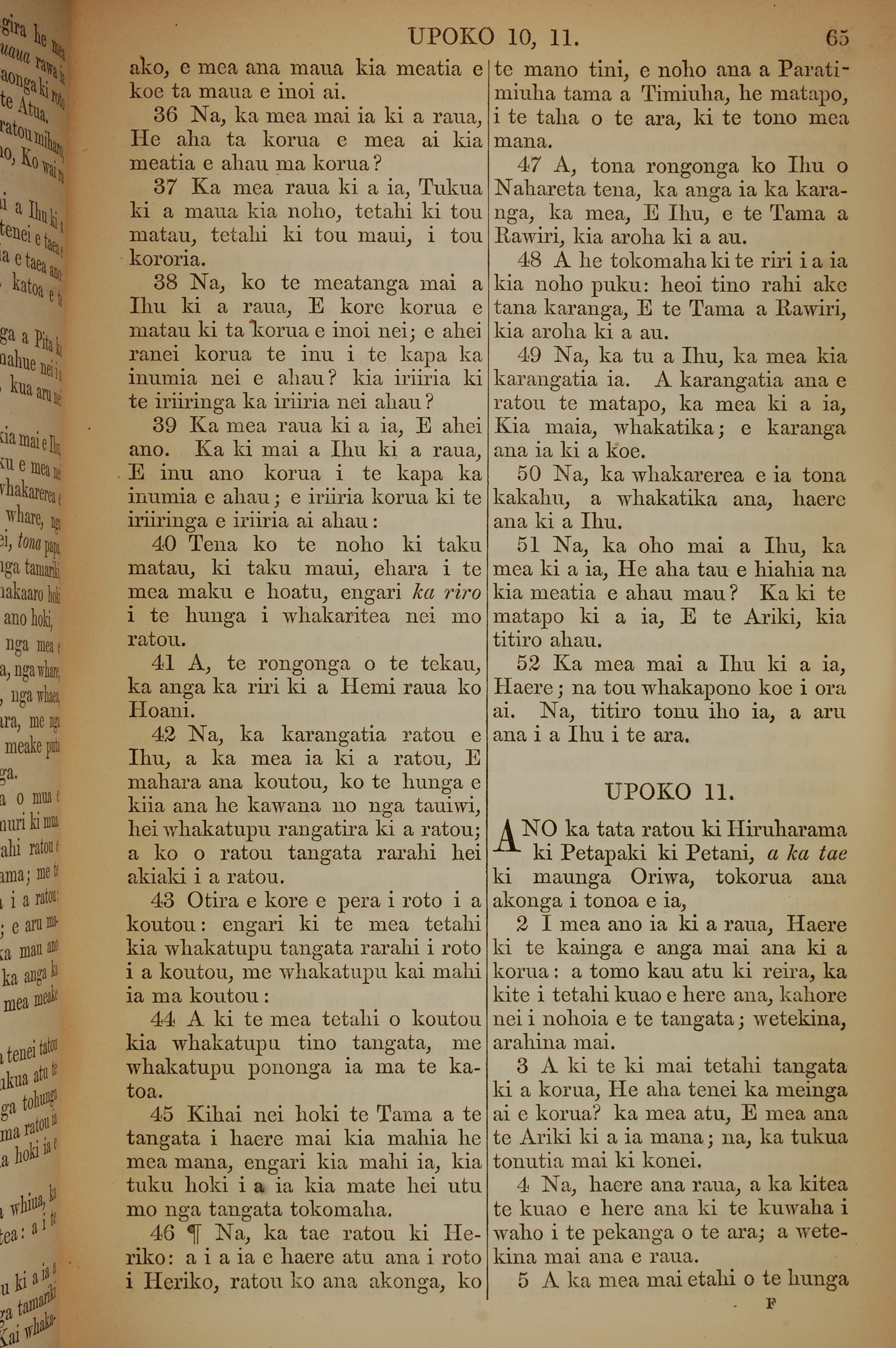 1852年KO TE KAWENATA HOU O TO TATOU ARIKI O TE KAI WHAKAORA O IHU KARAITI 馬可福音 10 章 36 節到 11 章 5 節