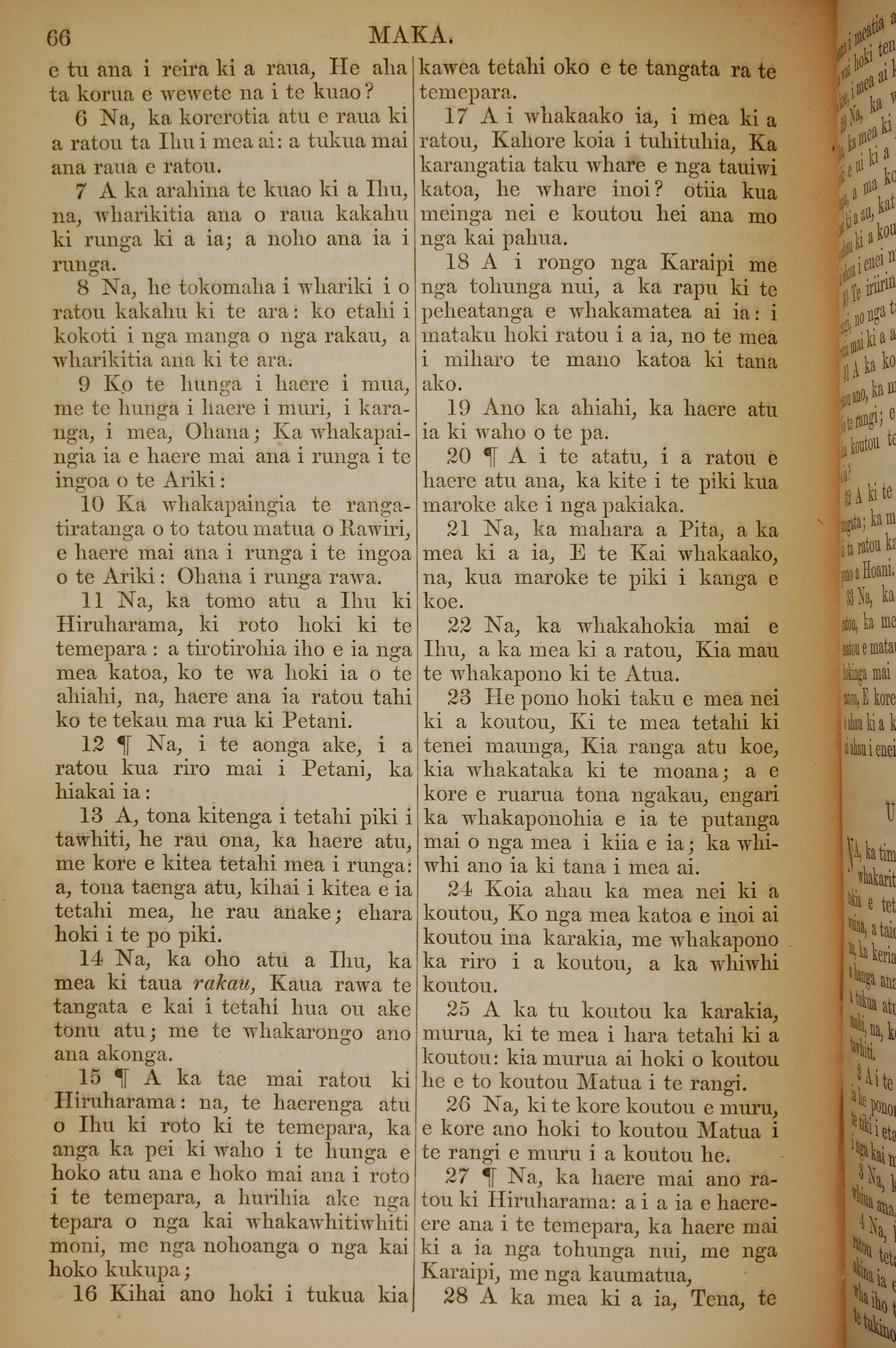 1852年KO TE KAWENATA HOU O TO TATOU ARIKI O TE KAI WHAKAORA O IHU KARAITI 馬可福音 11 章 6 節到 11 章 28 節