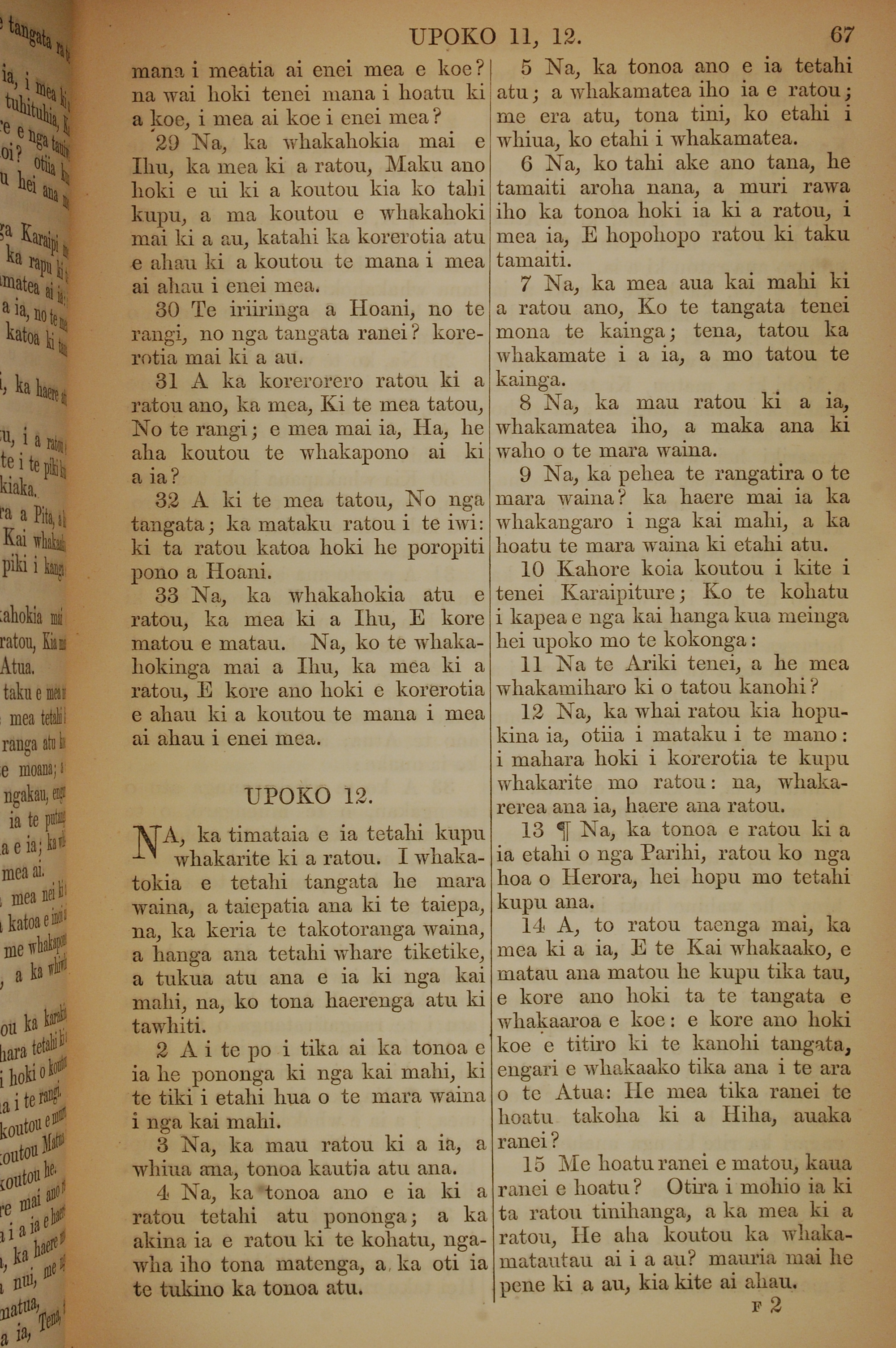 1852年KO TE KAWENATA HOU O TO TATOU ARIKI O TE KAI WHAKAORA O IHU KARAITI 馬可福音 11 章 29 節到 12 章 15 節