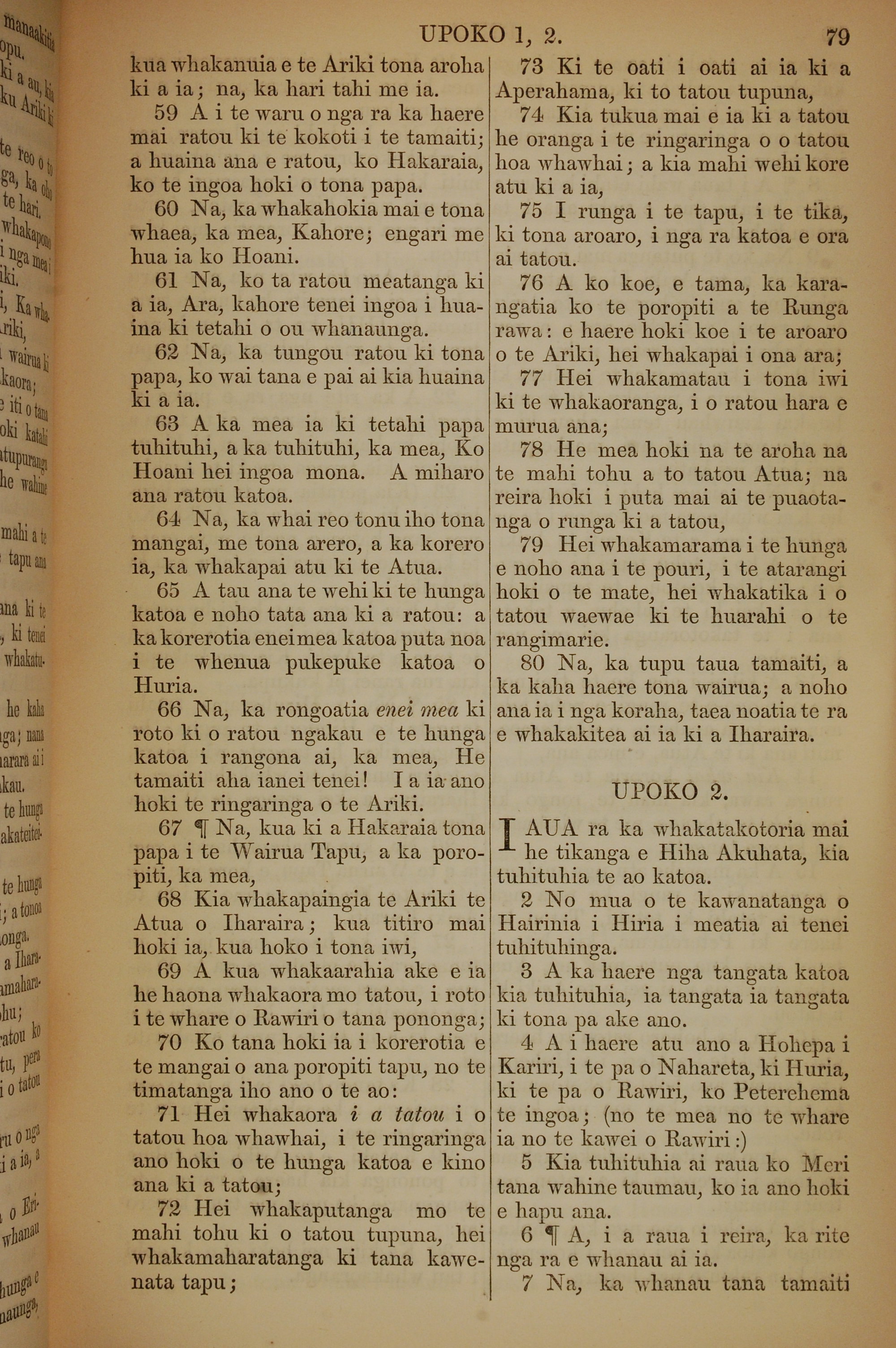 1852年KO TE KAWENATA HOU O TO TATOU ARIKI O TE KAI WHAKAORA O IHU KARAITI 路加福音 1 章 59 節到 2 章 7 節