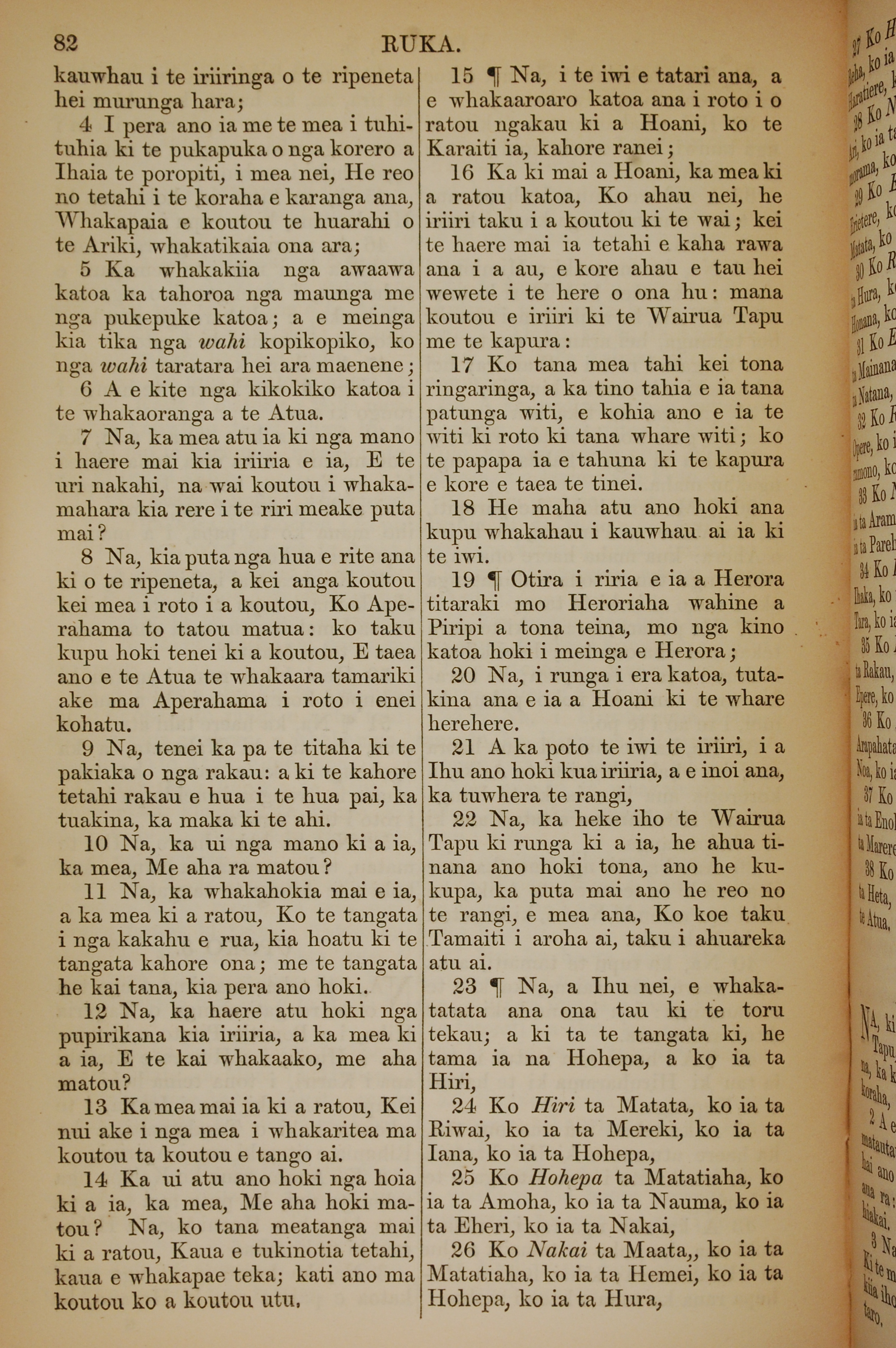 1852年KO TE KAWENATA HOU O TO TATOU ARIKI O TE KAI WHAKAORA O IHU KARAITI 路加福音 3 章 4 節到 3 章 26 節