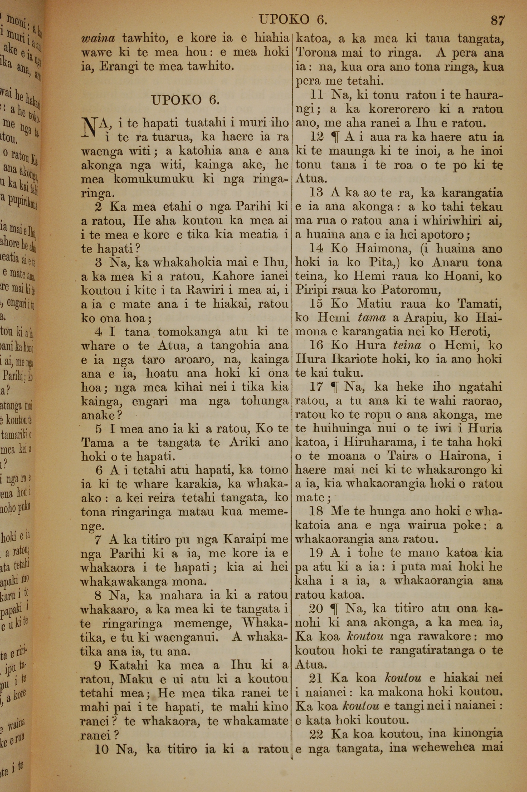 1852年KO TE KAWENATA HOU O TO TATOU ARIKI O TE KAI WHAKAORA O IHU KARAITI 路加福音 6 章 1 節到 6 章 22 節