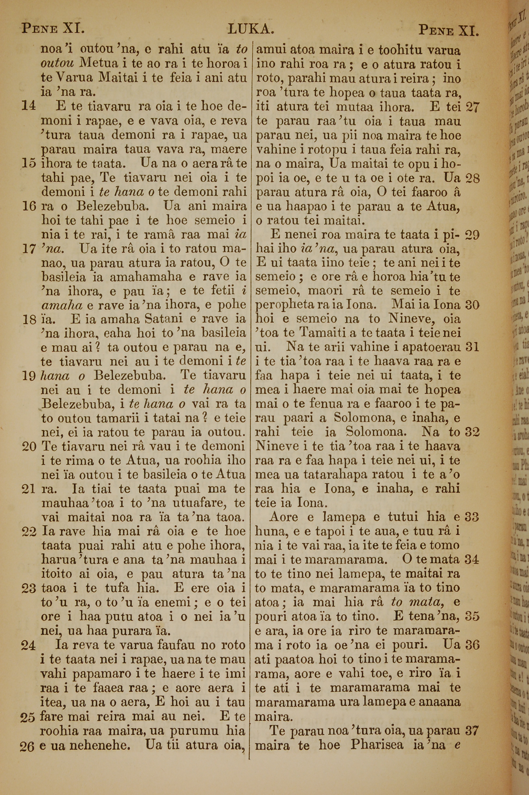 1853年塔希提語新約全書 路加福音 11 章 14 節到 11 章 37 節