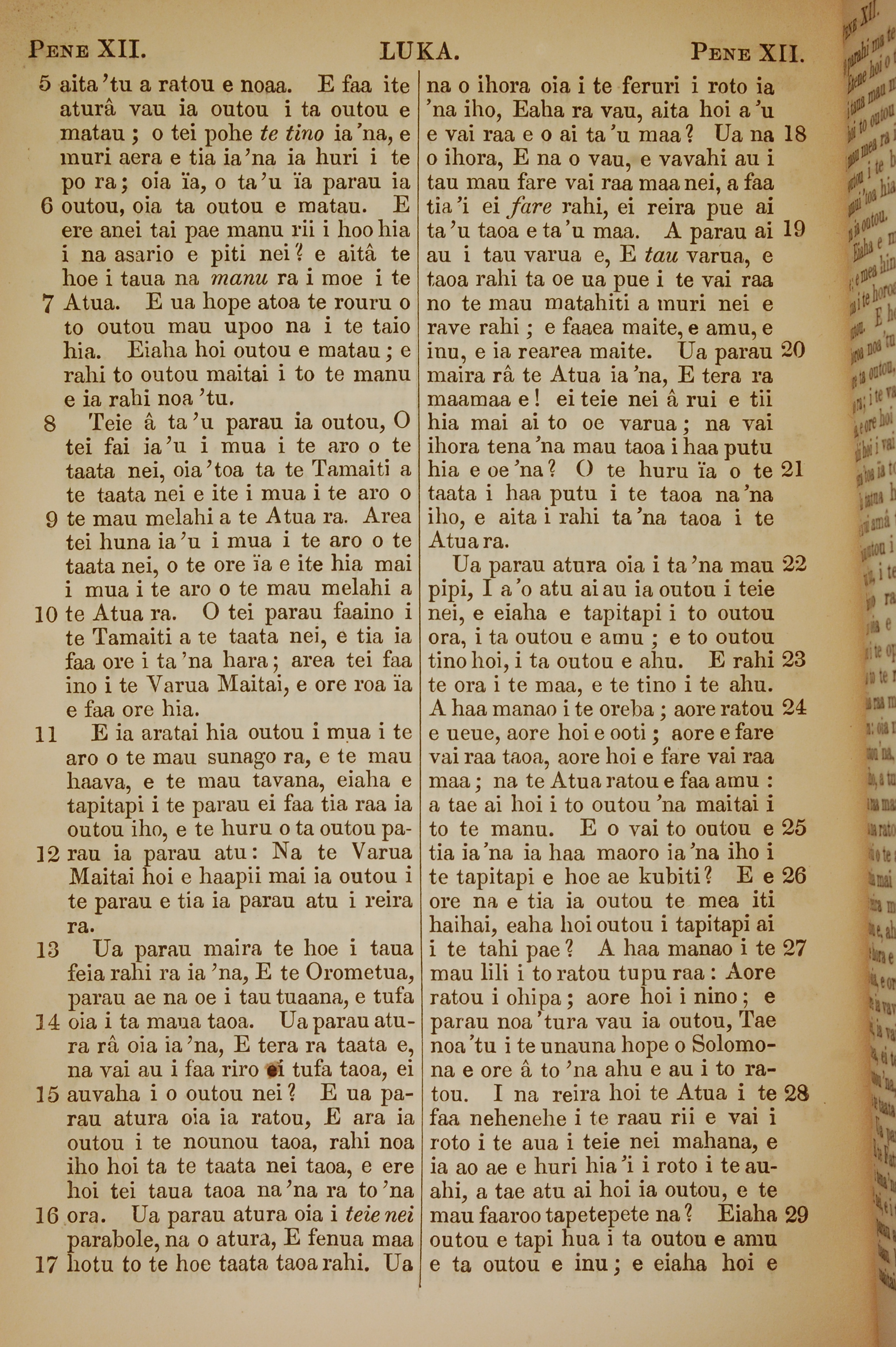 1853年塔希提語新約全書 路加福音 12 章 5 節到 12 章 29 節