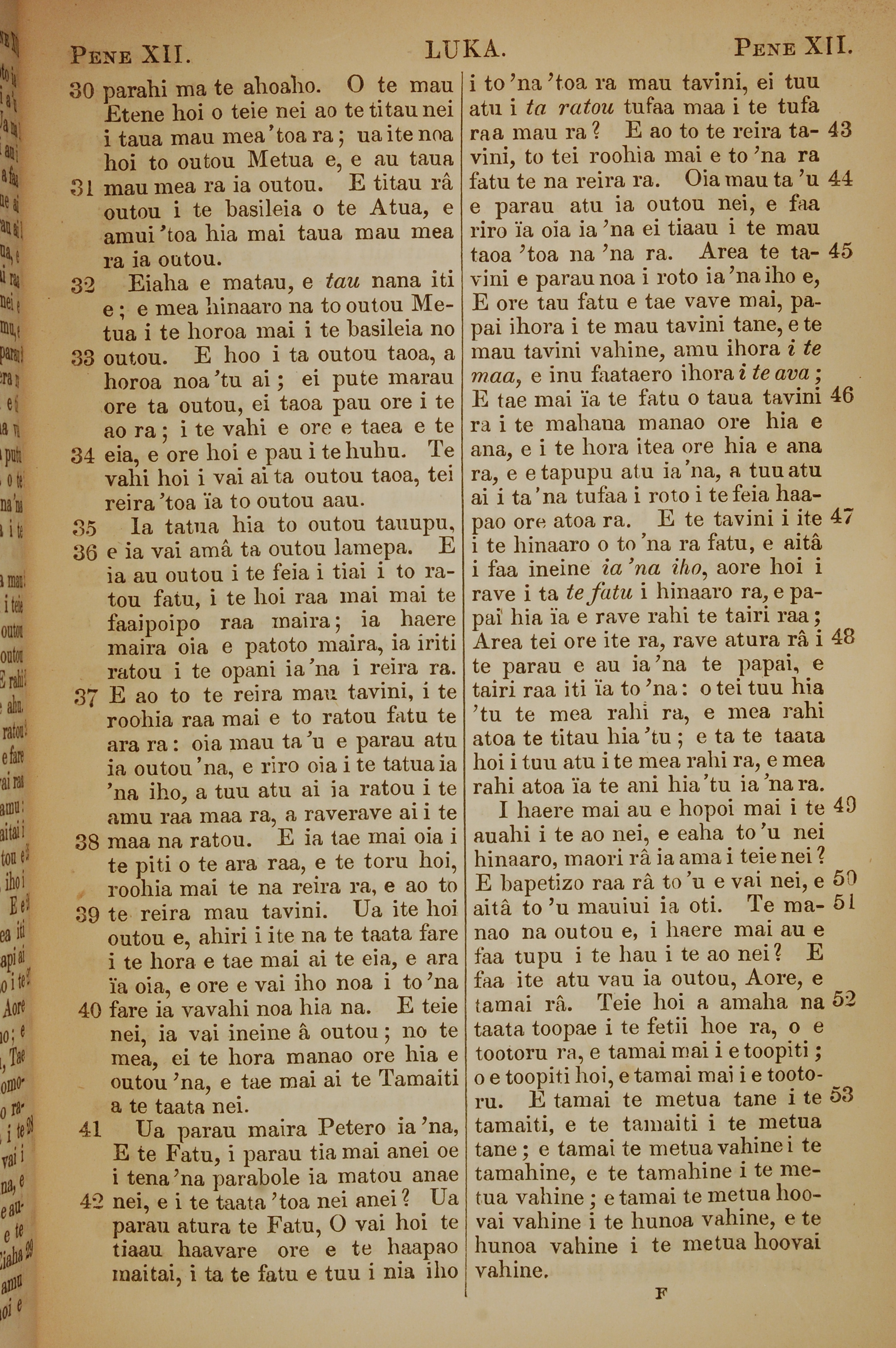 1853年塔希提語新約全書 路加福音 12 章 30 節到 12 章 53 節