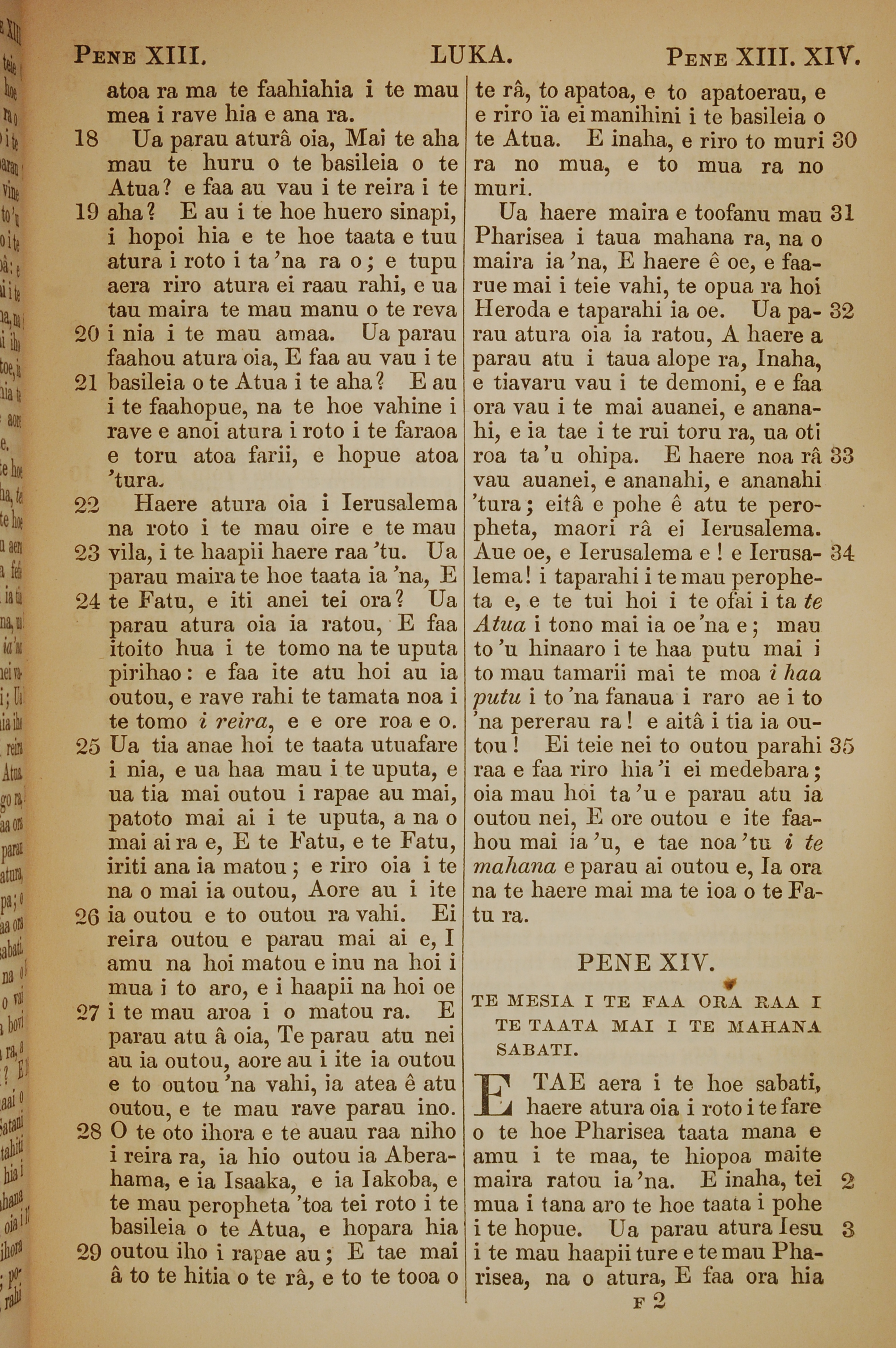 1853年塔希提語新約全書 路加福音 13 章 18 節到 14 章 3 節
