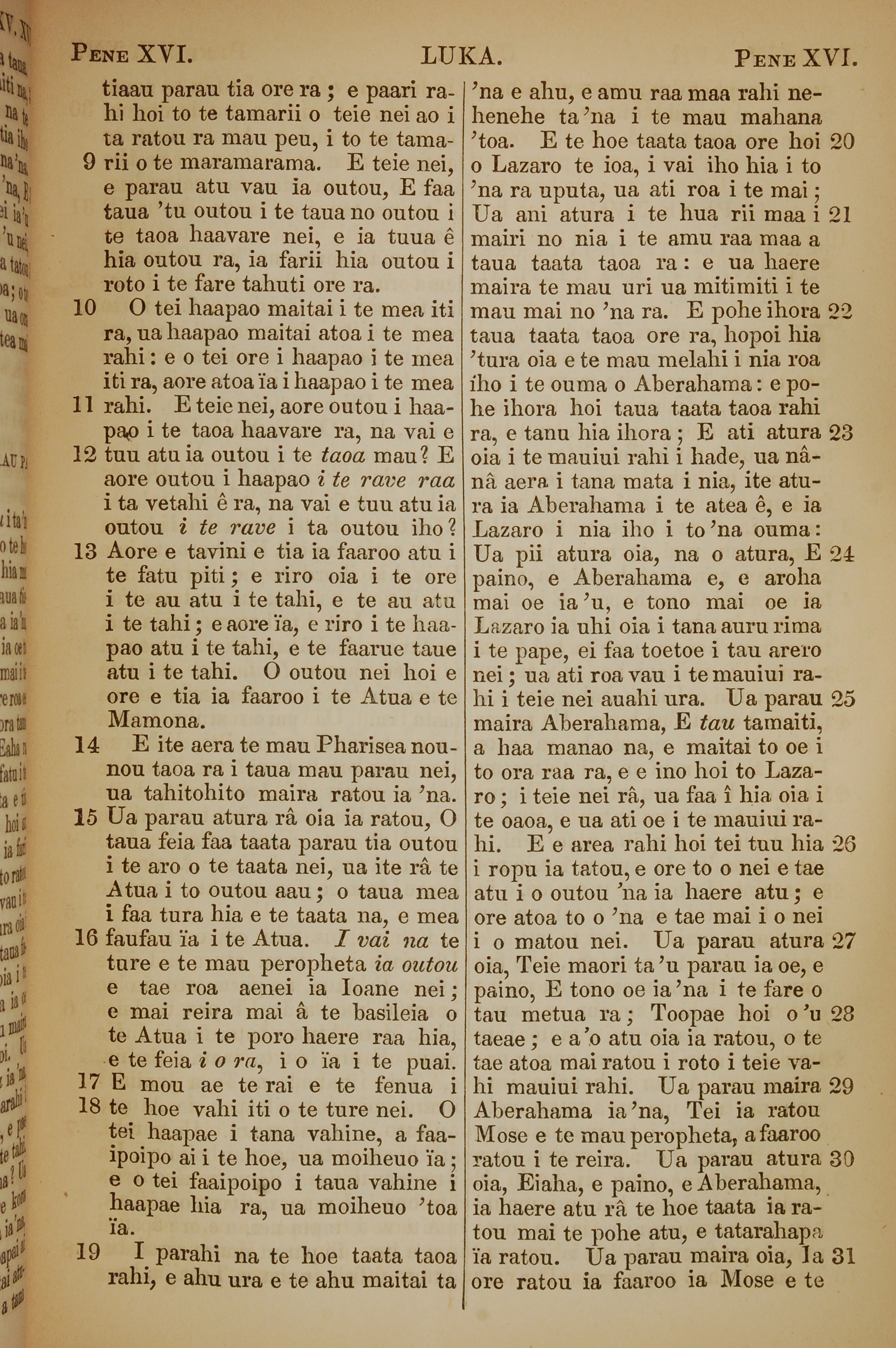 1853年塔希提語新約全書 路加福音 16 章 9 節到 16 章 31 節