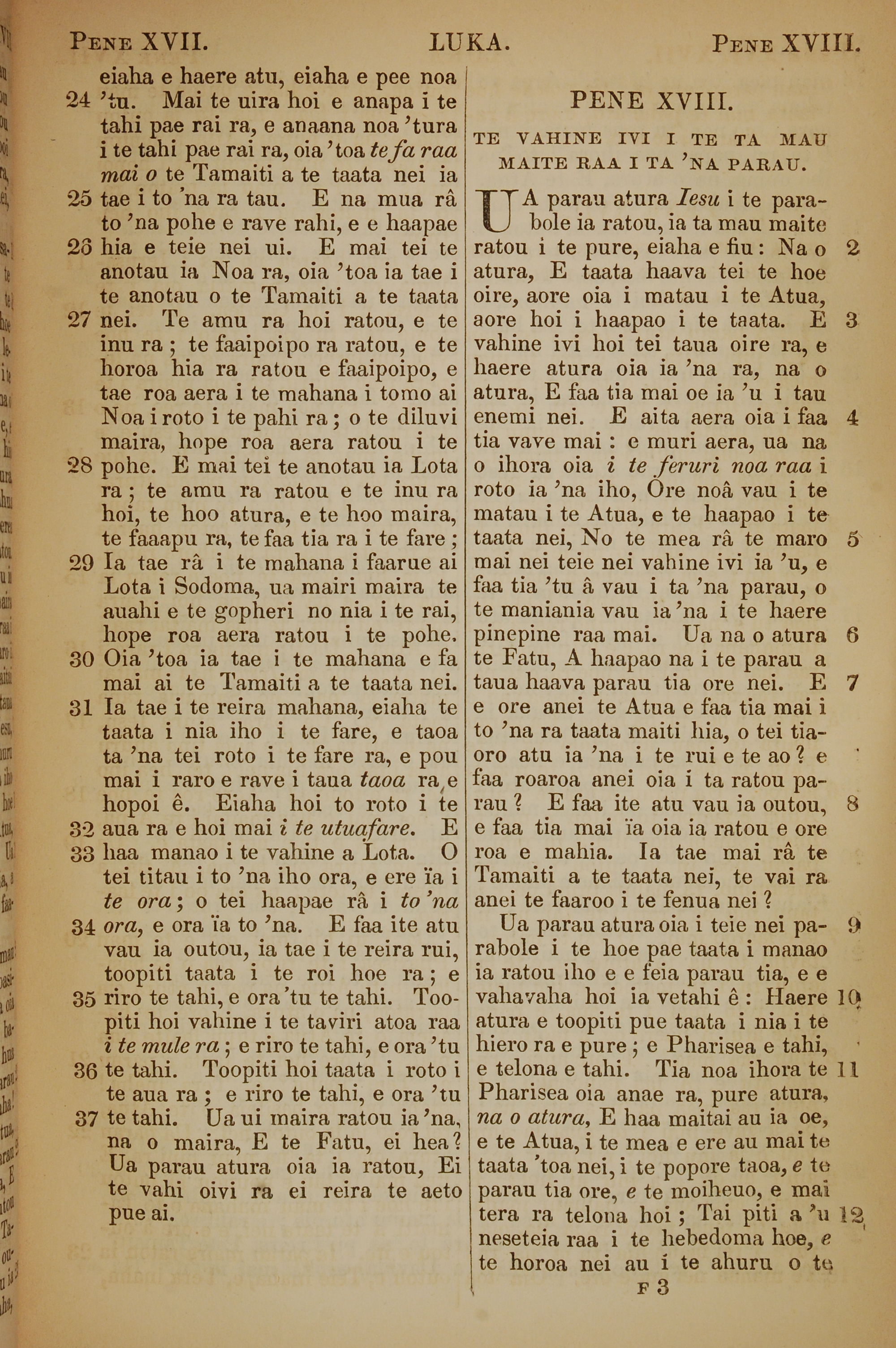 1853年塔希提語新約全書 路加福音 17 章 24 節到 18 章 12 節