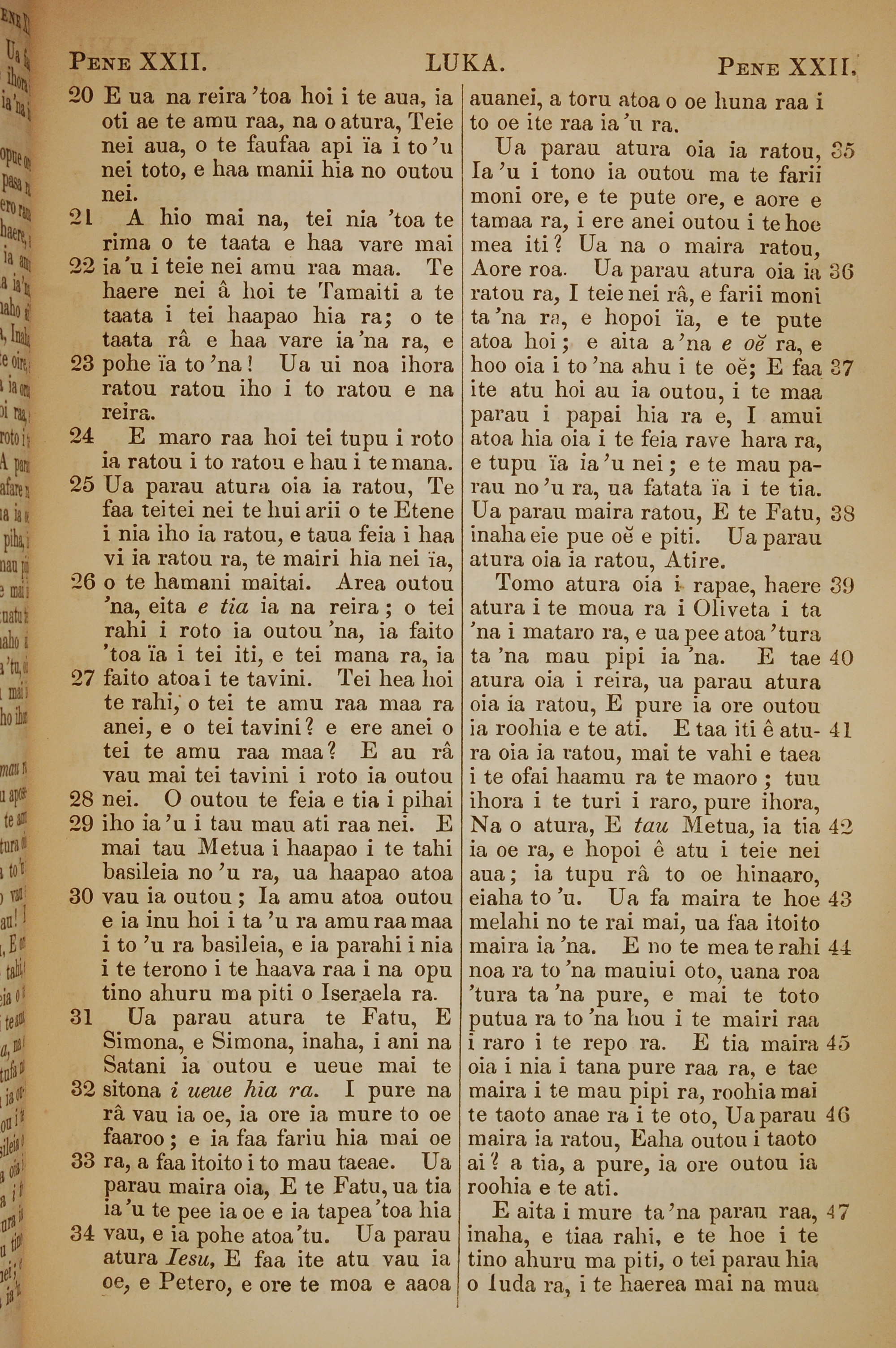 1853年塔希提語新約全書 路加福音 22 章 20 節到 22 章 47 節