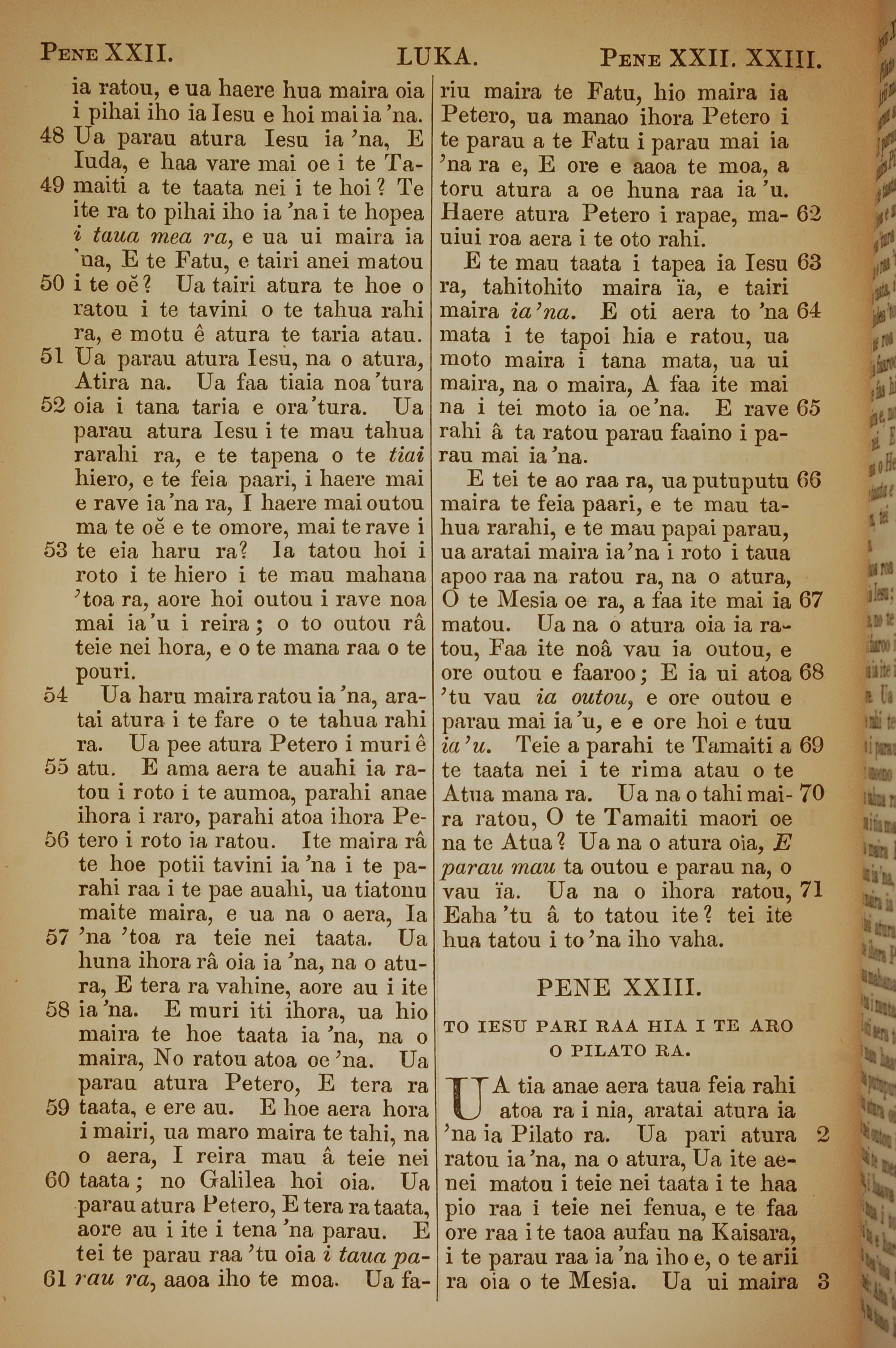 1853年塔希提語新約全書 路加福音 22 章 48 節到 23 章 3 節
