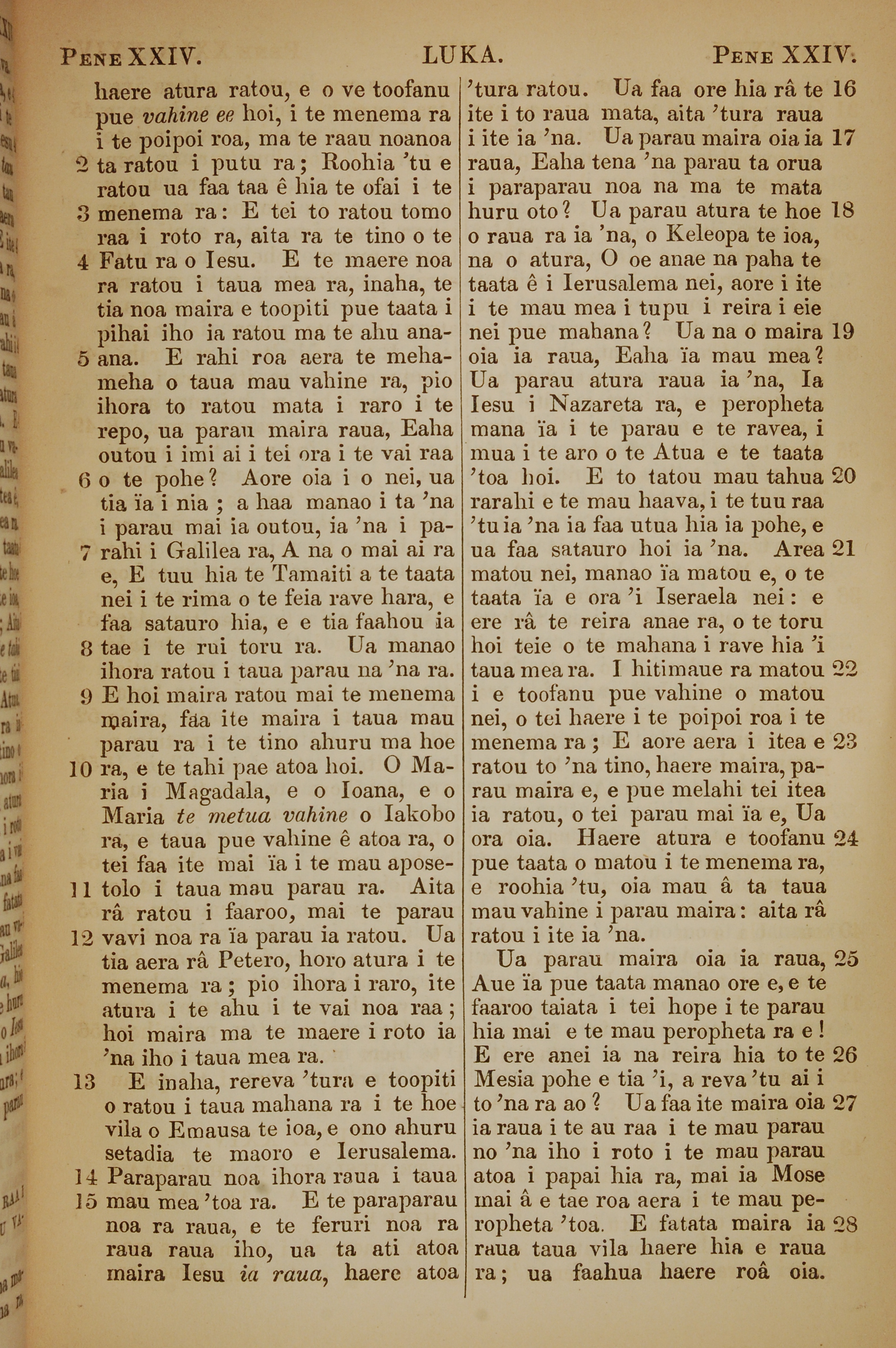 1853年塔希提語新約全書 路加福音 24 章 2 節到 24 章 28 節