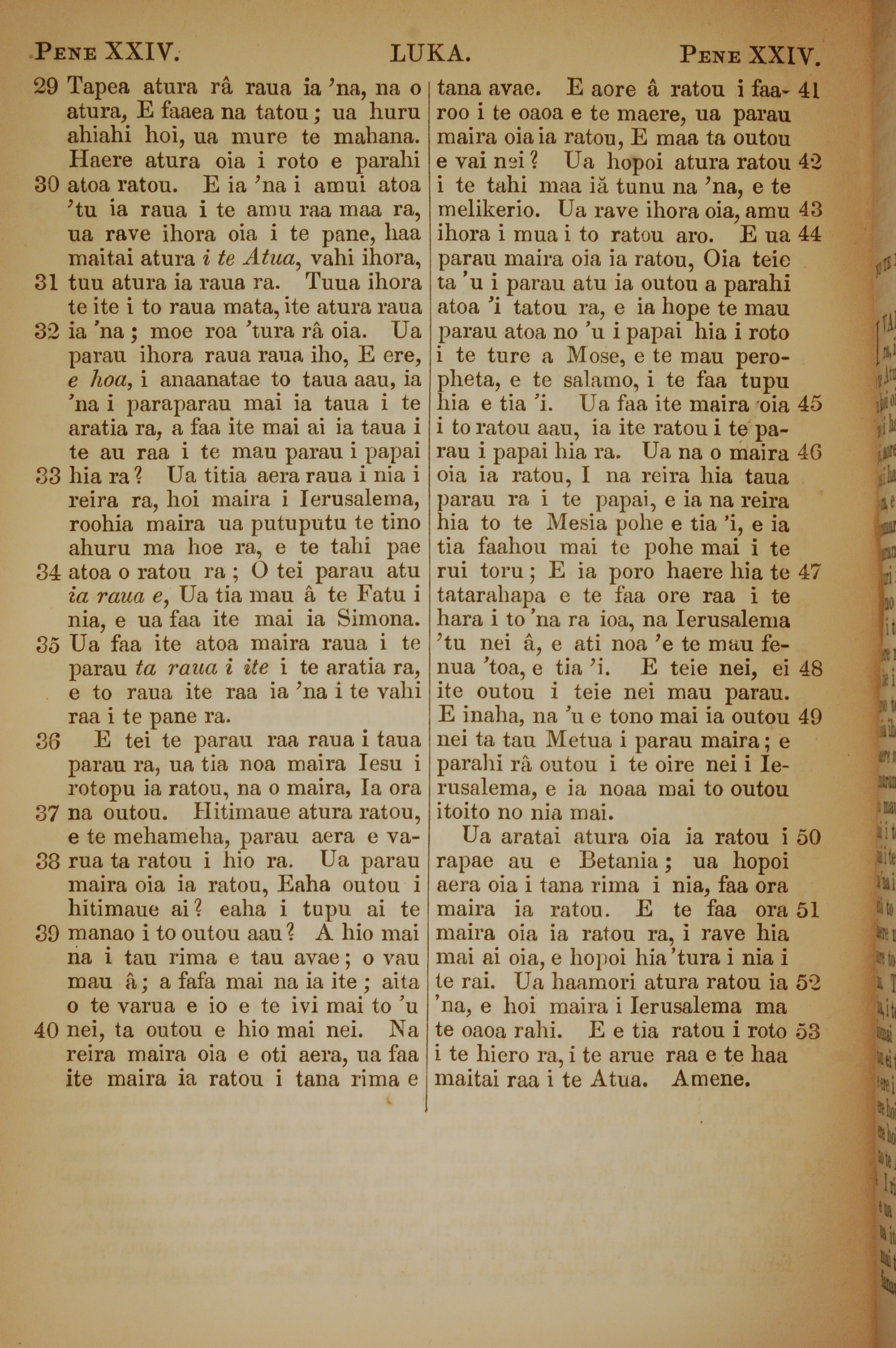 1853年塔希提語新約全書 路加福音 24 章 29 節到 24 章 53 節