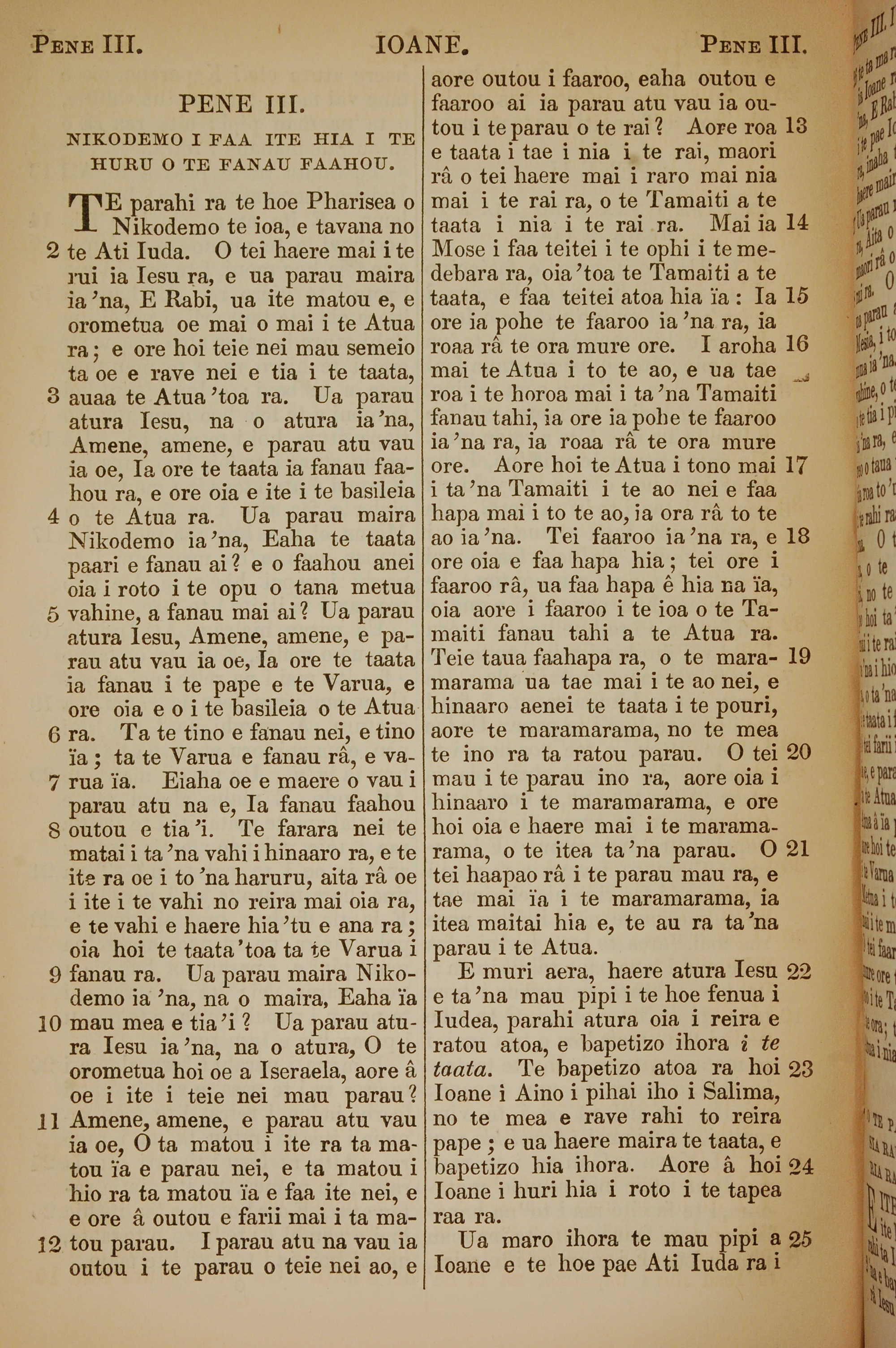 1853年塔希提語新約全書 約翰福音 3 章 1 節到 3 章 25 節